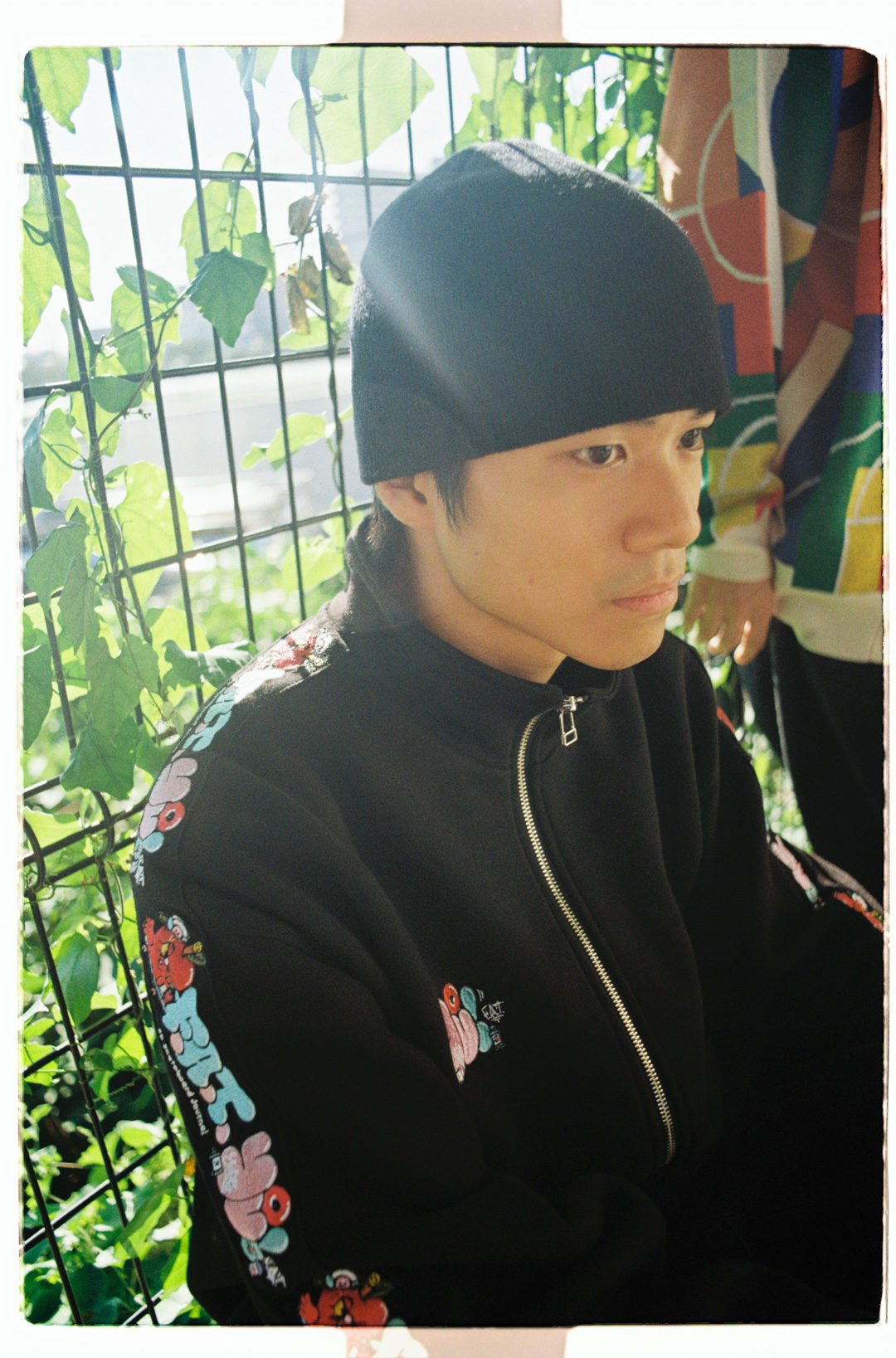 肌触りの良いなめらかな起毛感が特徴のジャージツイルを使用したセットアップアイテム。シャツはF.A.T.らしいゆとりのあるBIGシルエットながら、クロップド丈にすることでインナーとの絶妙なバランスを楽しめるデザイン。ボトムスは深い股上と広めの渡りでヒップから膝にかけてボリュームを持たせたワイドテーパードシルエットを採用し、ジャストレングスによる独特のラインが魅力。ドローコード付きでベルトレスでも着用でき、快適な穿き心地も兼ね備えています。