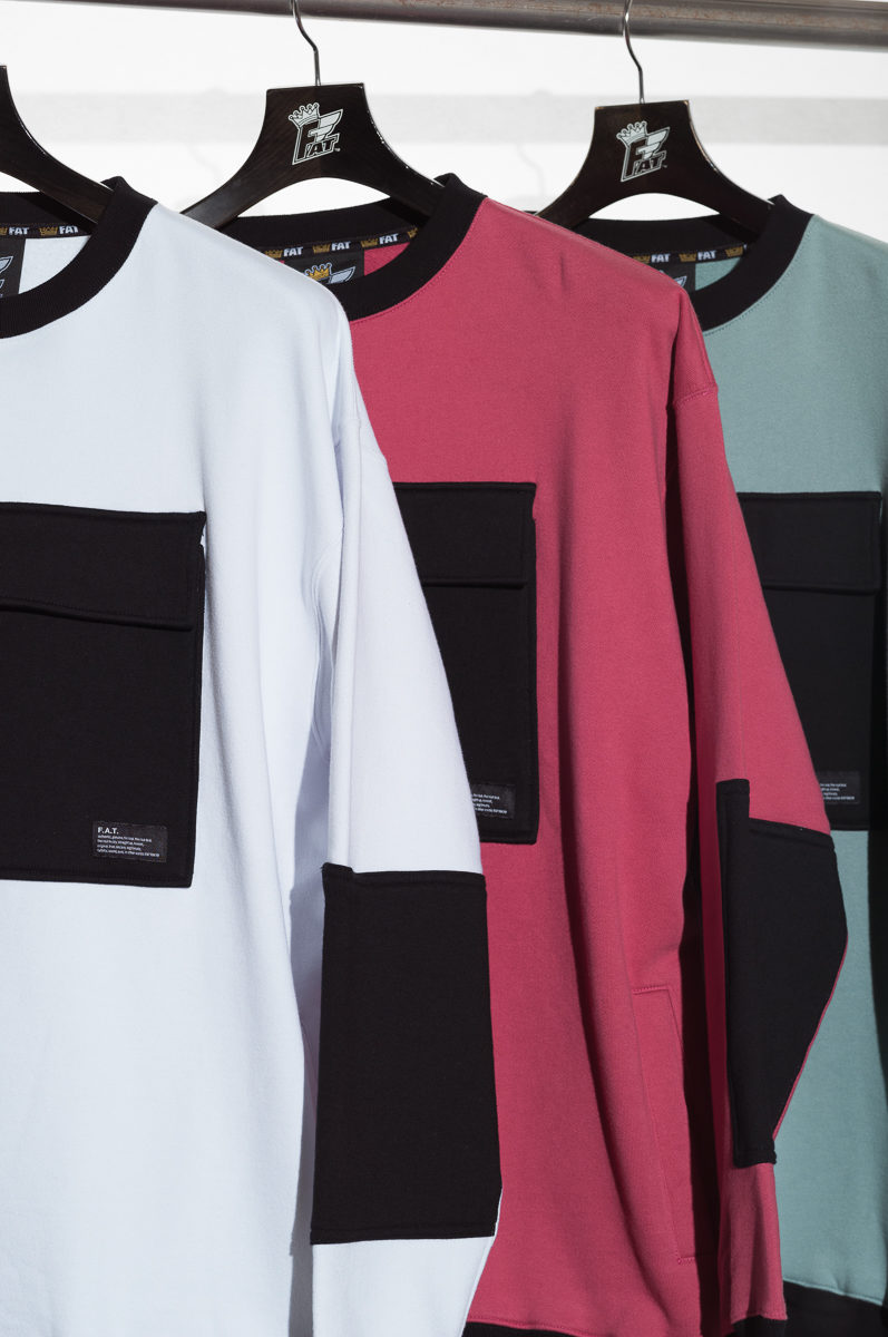 フロントの大きなフラップポケットが特徴的なクルーネックスウェット。ミリタリー調のエルボーパッチや各リブを配色切替えにし、サイドポケットも加え、デザイン性とユティリティー性を兼ね備えたアイテム。ぜひ!