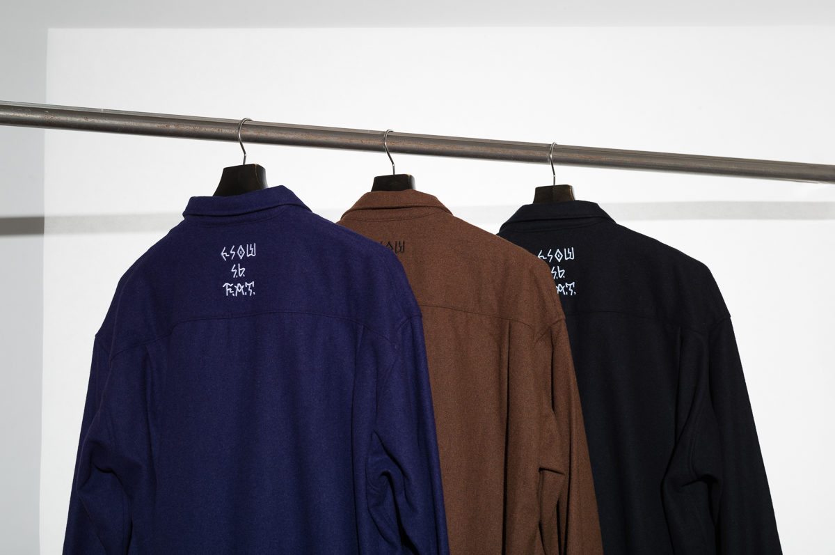 ウールの質感、風合い、そしてESOW描き下ろしのグラフィック。これら三拍子バッチリ揃ったシャツ。加えて、バックのタギング、これまでの作品もグッとさせてもらってきたけど、今回のデザインはクセになること間違いなし。ウールなのにモウ。