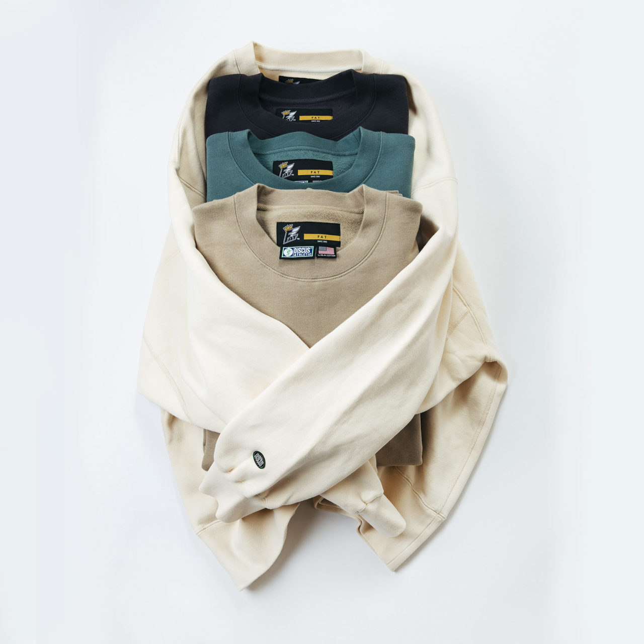 先に店頭で発売しているFAT 2021 Spring & Summer “CREED”のプレデリバリー。本日よりFAT ONLINE SHOPでも販売がスタート!1973年にアメリカで誕生した”伝統””力強さ””スポーツ”をテーマに掲げるスポーツアクティブウエアブランドDISCUS ATHLETIC x F.A.T.のコラボレーションのプロダクト。今回のはどれもUS COTTONから編み立てた生地がいつものそれとは違うなってところをまず感じていただければ!オーソドックスだけどそうじゃないなってすぐにわかるFATのビッグシルエット、子気味良く主張する刺繍のブランドタグや、スウェットとロンTで色は違うんだけどトーンは近い、なんて色々気にして欲しいポイント散りばめてるのでブラウザ凝視して選んでいただければ!もちろんやっぱり実際に見たいと店頭でも。ぜひ!!!
