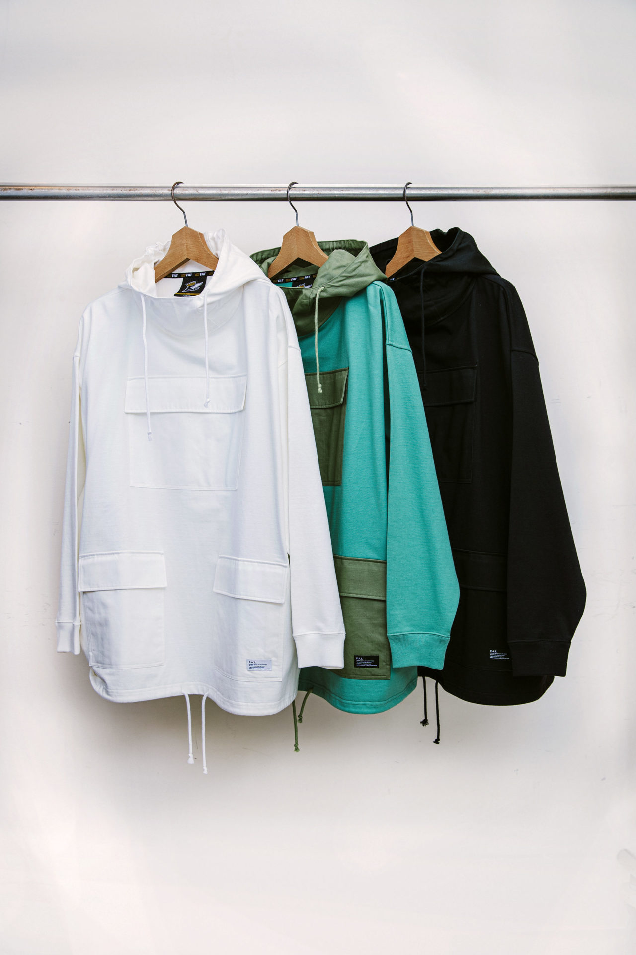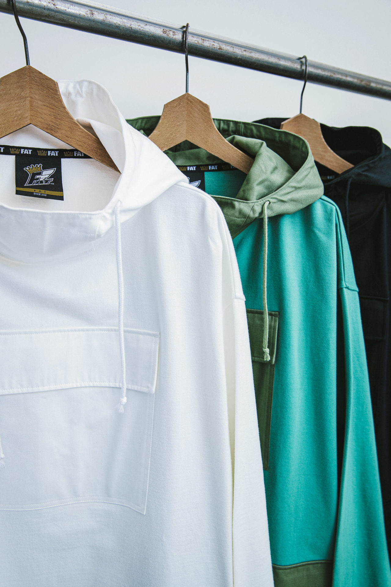 またまたコチラもFATの定番13ozの肉厚生地を使用したカットソー。フード、ポケットにバックサテン生地が付いたデザインのパーカー。同色異素材で生まれるコントラスト。ホント足すと印象が変わる。お馴染みビッグシルエットなのでこの中に着こむも良し、この上に重ねるのも良し。着こなしは多様、ポケットは多数。ぜひ!