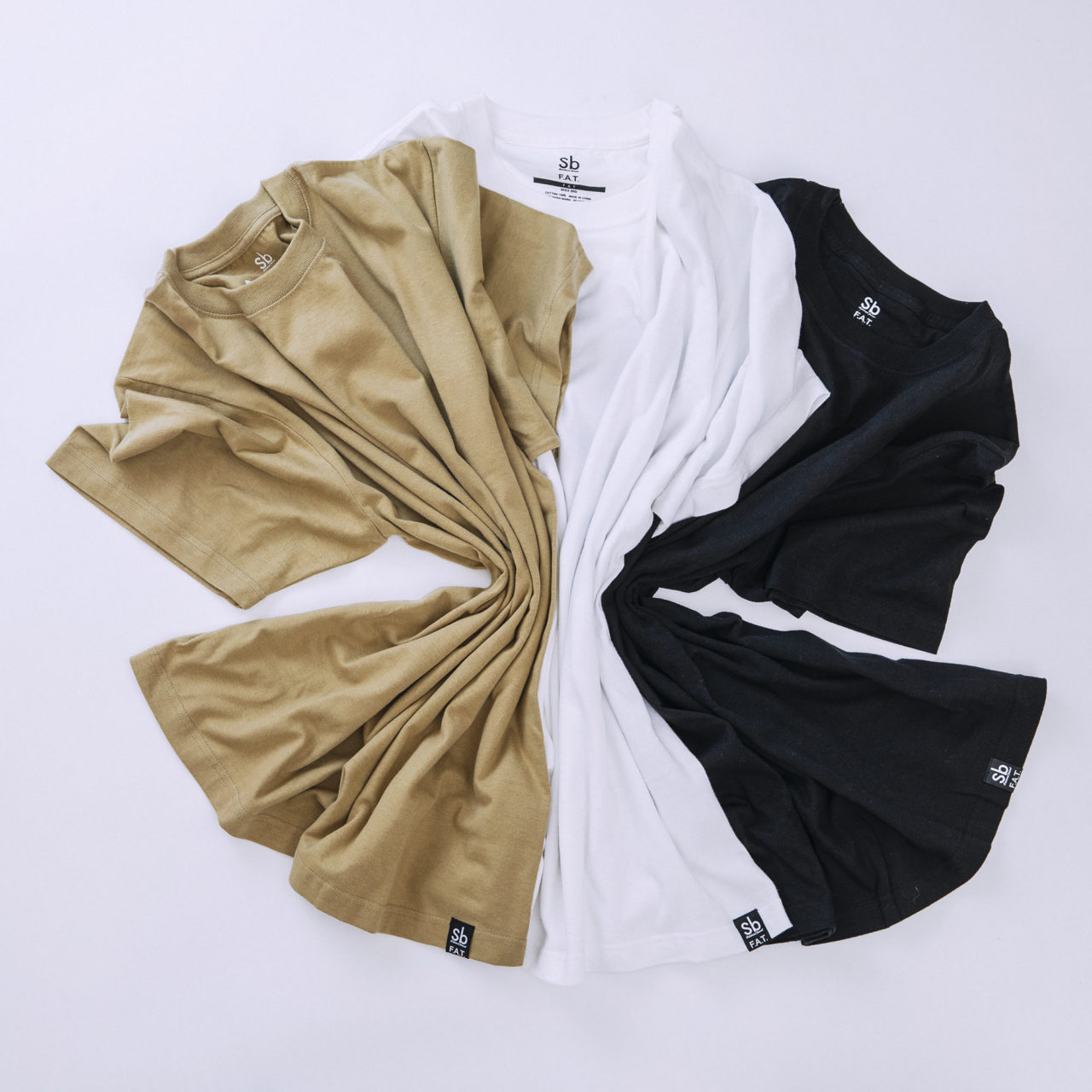 第1弾から絶好調だった“JOURNEY PACK”シリーズのF.A.T.×Sbのフレッシュなオリジナル・タグとパックデザイン以外、あとはもう何にでもどうにでもしてのソリッド・イズ・ザ・マジックナンバーな2枚組のパックT。前回、不肖Sbがのたまわった通り、このパックT、途中抜けとかフェイキーアウトとかすることなく、FATの新定番を追加していくつもり。今回、第2弾ではホワイトとブラックに加えて、新色ベージュが登場。旅先のサンセット。乾いた汗が心地良い疲れを臭気で実感させるとき。1サイズオーバーで着たベージュのTシャツを風に音をつけるがごとくバタつかせたい。