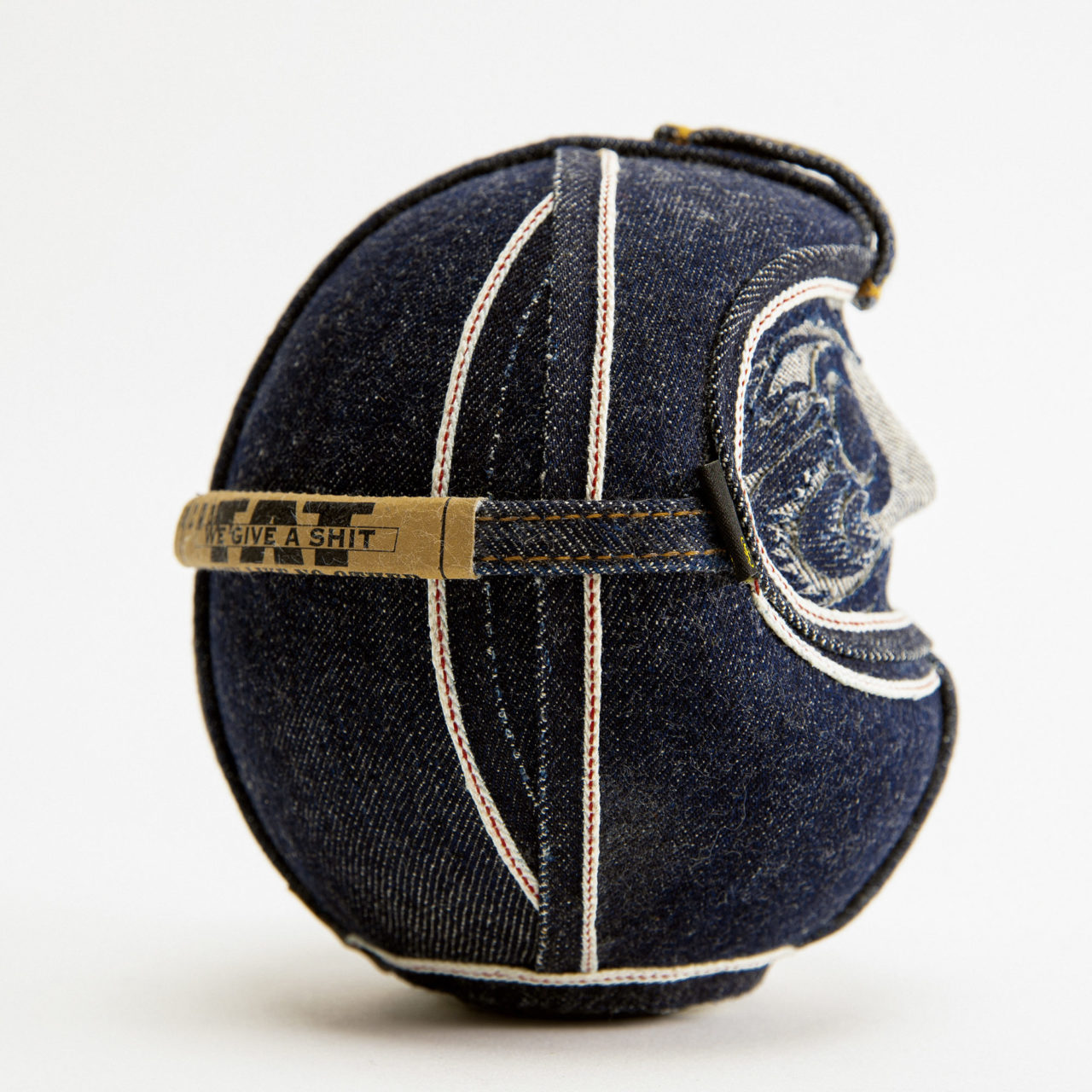 F.A.T.の2021年。19周年を迎えるストリート・ブランドが願う五穀豊穣。F.A.T.のコメ・ムギ・アワ・マメ・キビとは何か。それはスタイル・クォリティ・クリード・プリンシプルに、フォロワーのみなさん。もしくは、イエローxブラックなカラーリングにデカイにスケボーにFATカルチャー。そういったF.A.T.にまつわるものたちの豊穣を願ったハッピー・アニバーサリー・アイテム。それが〈デニム・ダルマ〉。これは、F.A.T.定番のスタジャンのように着るアイテム、ではない。F.A.T.定番のオックス・フォードのデカボタン・シャツのようにはおるアイテム、ではない。F.A.T.アイコンの13オンスTシャツのように写真を着るアイテム、ではない。F.A.T.クラシックの“247”デニムのように穿くアイテム、でもない。では何か。〈デニム・ダルマ〉は作品であり、F.A.T.的五穀豊穣の縁起物。ライフスタイル的なインテリア・アクセサリーであり、F.A.T.的ヒストリックなコラボレーション。ということで、今回のコラボレーションは、F.A.T.の19周年という時間の中で出会って・繋がったものを象徴している〈デニム・ダルマ〉をどうぞよろしくお願いします。