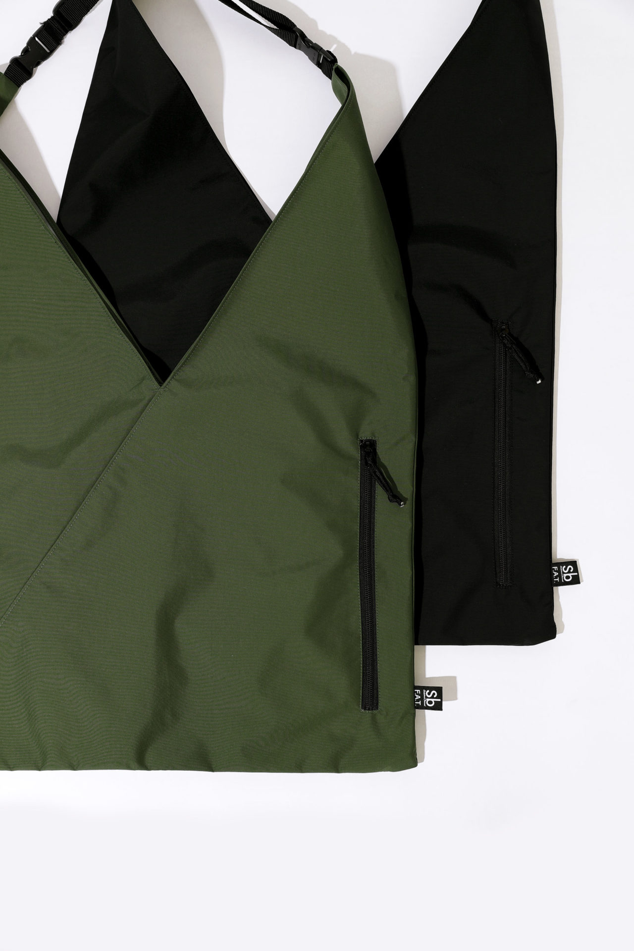 ショルダーで2通りの使い方。そして手持ちのザ・ハンドル。という3wayバッグ。これが赤でも青でもなくて、ブランドカラーの黄でもジェントリーな白でもなくて、オリーブとブラックというのが“JOURNEY PACK”シリーズならではなところ。ストリートでカジュアルというジャンルにあって、とくにタフでハードボイルドで、“あ、旅の真っ最中なんでおかまいなくっ”っていう、男臭いパートを担っている感じ。そう、大友克洋の『気分はもう戦争』よろしく『気分はもう旅の途中』なアイテム。