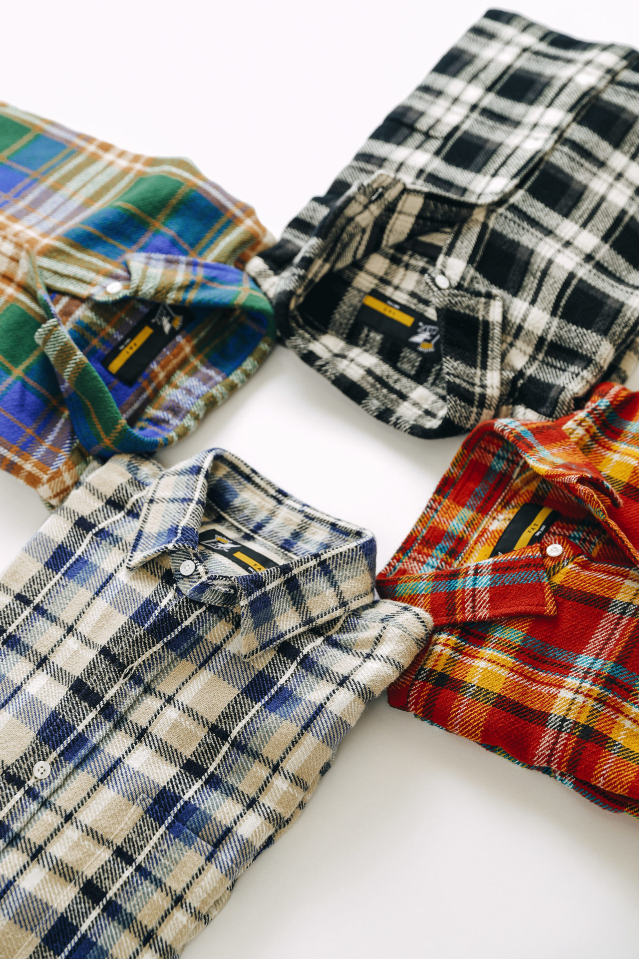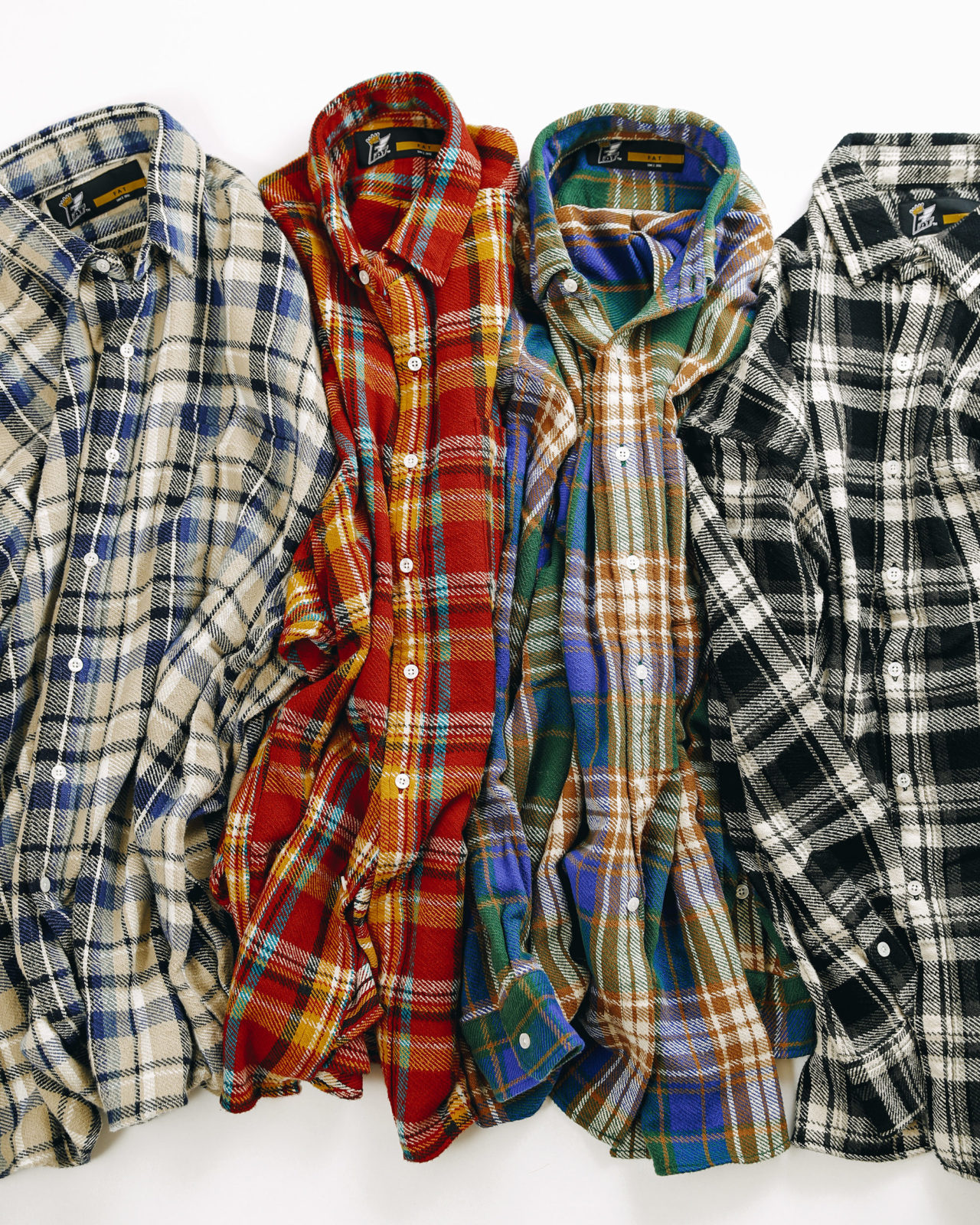 ネルシャツが今年もやってくる。秋の訪れを知らせるかのような季節便り。今回もBIGシルエットで仕上げ、チェック柄と言えば真っ先に思いつく、タータン柄のフランネル生地はFATのPRINCIPLe=に沿った発色でご用意。アメカジと言えばのネルシャツ、501、アイリッシュセッターの王道もいいけれど、これに247、Padmore&BarnesなんてのがFAT流!!!準備はよろしいでしょうか?一度お試しを、ぜひ!