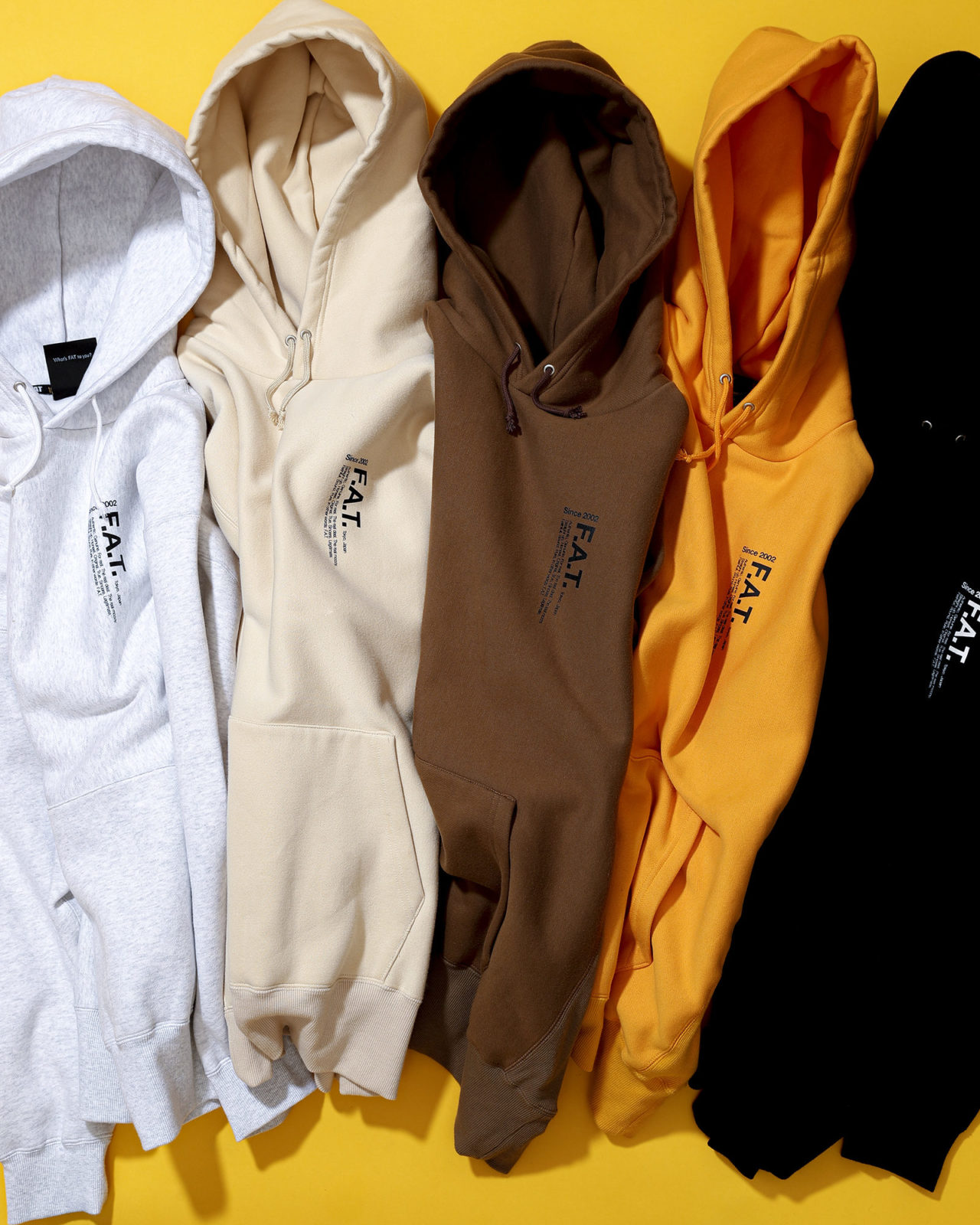 フロントは左胸に控えめに、バックは背中に大胆にプリントを施した裏毛起毛のスウェットパーカは、シンプルに見えて印象強い。とびきりフレッシュ、エスタブリッシュ、久しぶりっす!マスタードでもコヨーテでもないF.A.T.といえばのブランドカラーのイエローも展開。フードかぶってバックプリント見せて上下スウェットのセットアップでも!?一度お試しを、ぜひ!