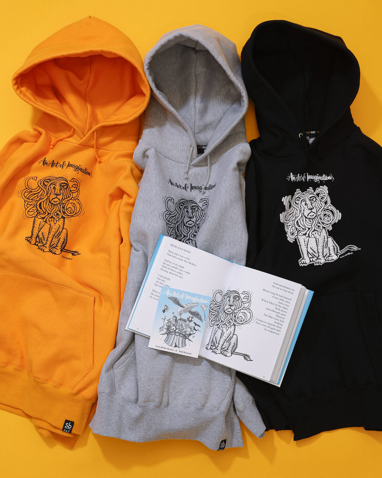 パリ在住のスケーターでフォトグラファーのスコット・ボーンが、小説『Cheating on the Metronome』や『A Toast to the End of Time』を上梓している作家だというのは、F.A.T.と彼とのコラボ第1弾でお伝えした。全身ガッツリの入れ墨と、強いスケートスタイルでコワモテのイメージを漂わせるプロライダーだったというのは、F.A.T.界隈だけでなく世が知るところ。そんな彼が次に発表したのは、『An Act of Imagination』という絵本。これは、スコット・ボーンが書いて創作したストーリーに、『スラッシャー』誌などでも活躍するアーティストのトッドがキャラクターと絵を描いた共同制作。F.A.T.とSbは彼らの絵本に共鳴するとともに、2人とヨーロッパのその絵本の出版社からもバチコンと協力してもらってコラボアイテムを作り出した。メッセージ性とキャラクターのデザイン性、そしてボディを含めた世界観は、着るというより読み込み沁み込むという感じ。グッときてバッといって欲しいコレクション!
