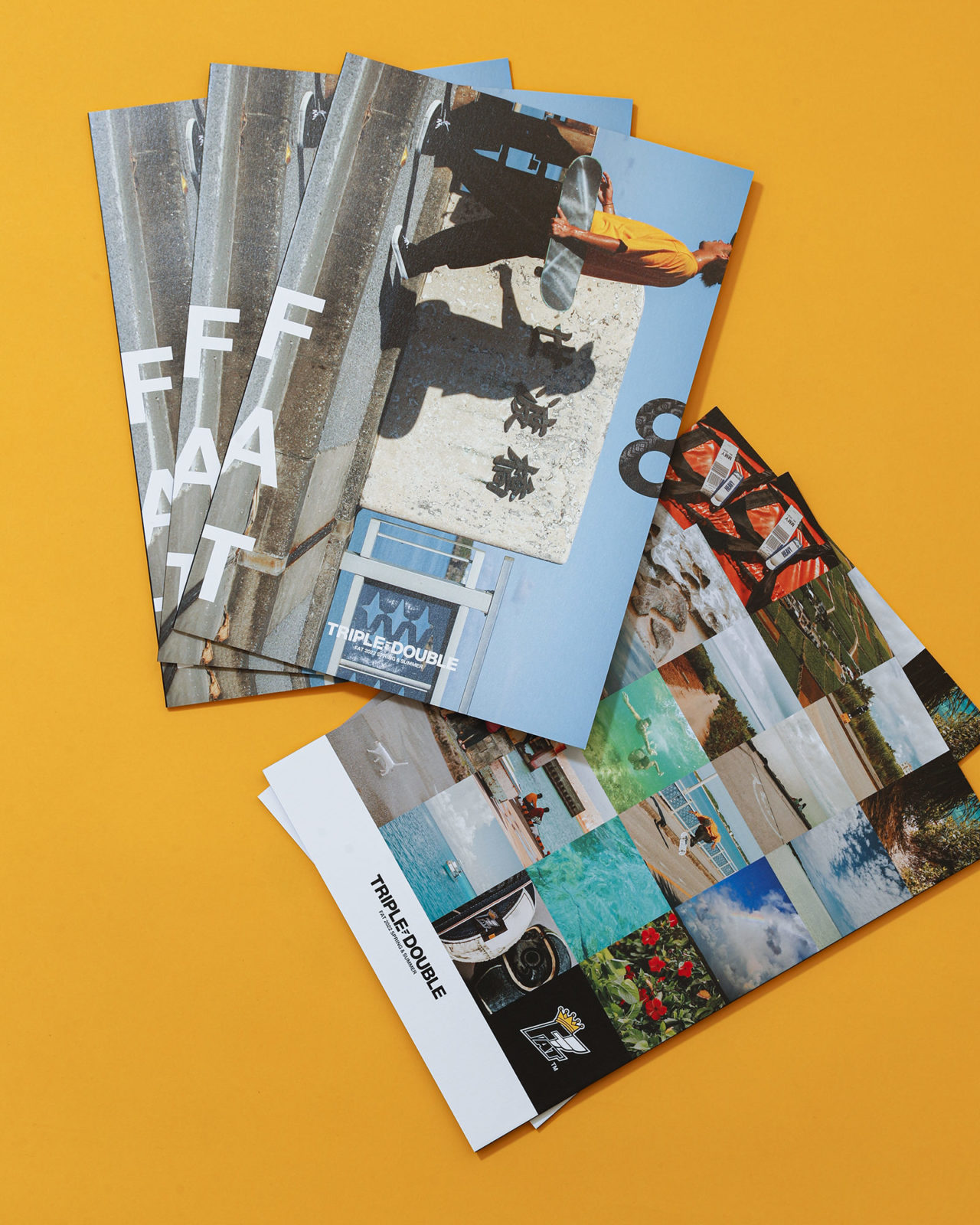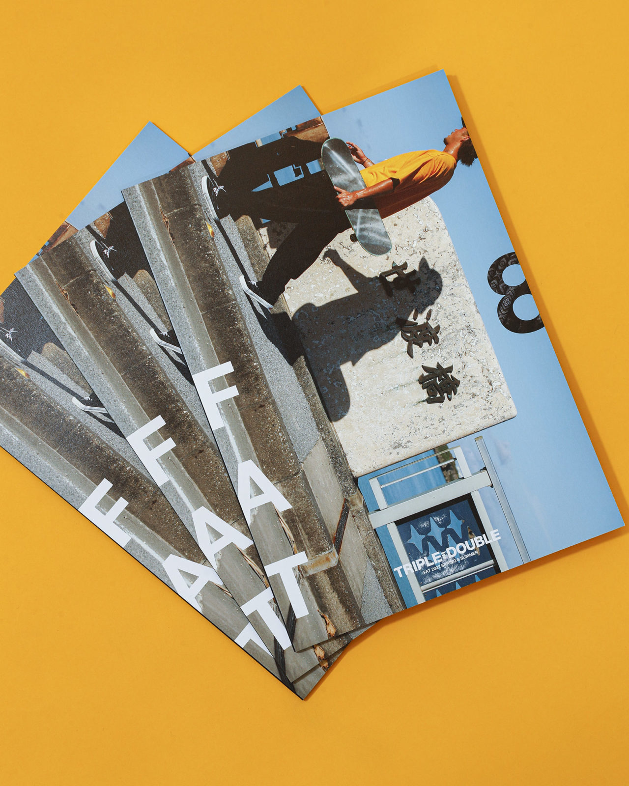 ということで、記念すべき節目のシーズンテーマは TRIPLE DOUBLE = 3(F.A.T.)20年間。我々のブランドがここまで継続してきたのに相応しいテーマだと思う。そして。み なさんには、ブラック×イエロー! デカい! スケートボー ド! そういった F. A .T.らしさをトリプルダブルで感じまくっ ていただく、シーズンになるに違いない。 これら、すべて大好きな 9 0 年代の風に吹かれている。今季もよろしくお願いします、ぜひ!!!