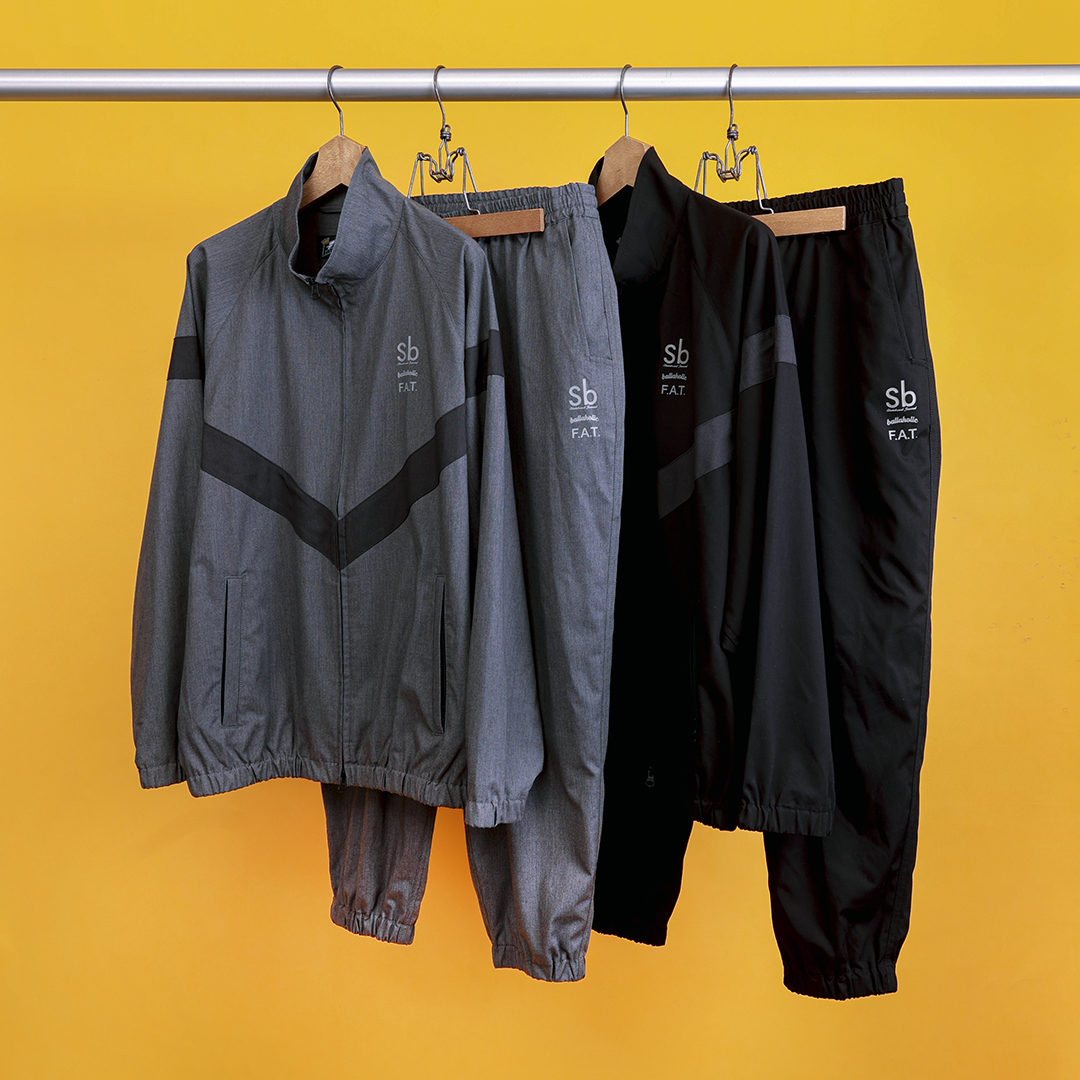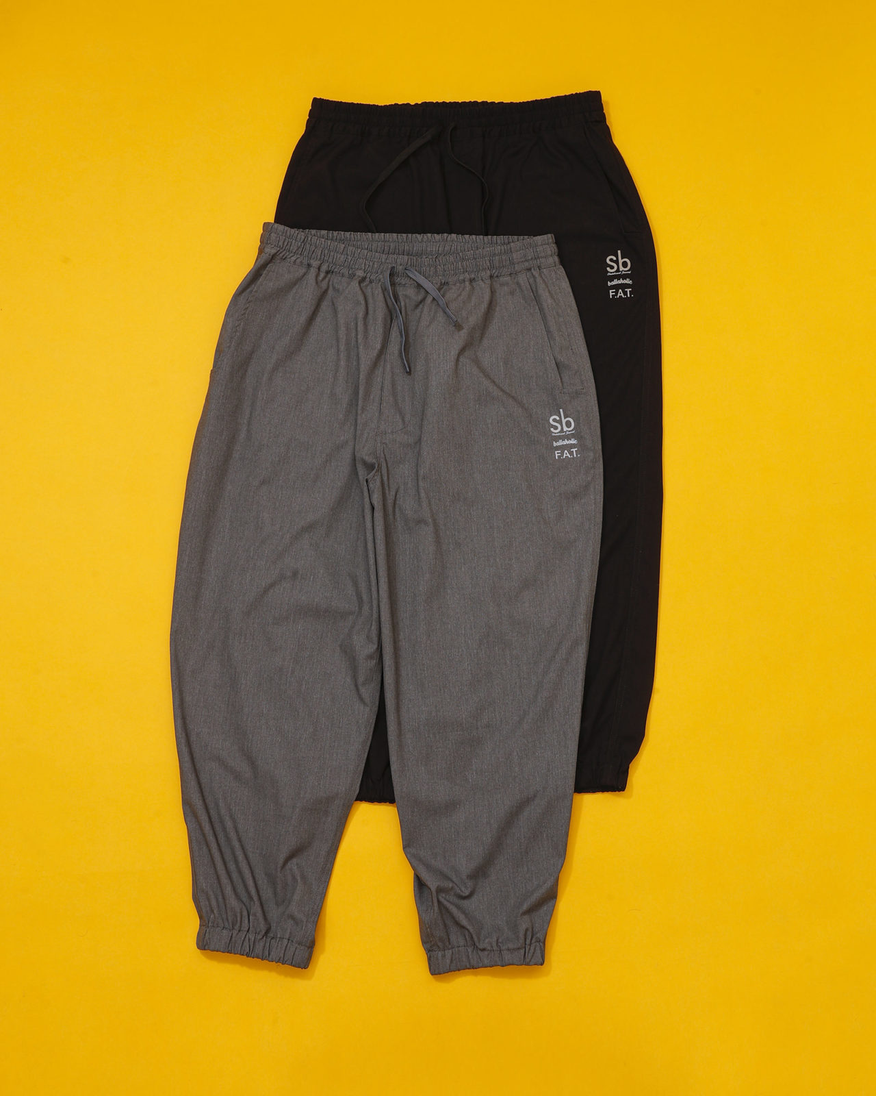 ALLDAY ALLNIGHT EVERYWHERE ANYWHEREでストリートボールの“ballaholic”と、いつでもどこでもデカくて黄色か黒くてストリートなF.A.T.と、スケボーをジャーナルし続けて20年のSbとの、どこでもどうしてでも対応してくれるジャージーのようなジャージーではない洒落たセットアップ。裏ネタ的には、御大クリント・イーストウッド監督の息子でイカした俳優のスコット・イーストウッドが、映画『アウト・ポスト』なんかで着ている、屈強な男たちのトレーニングウエアがモチーフ。