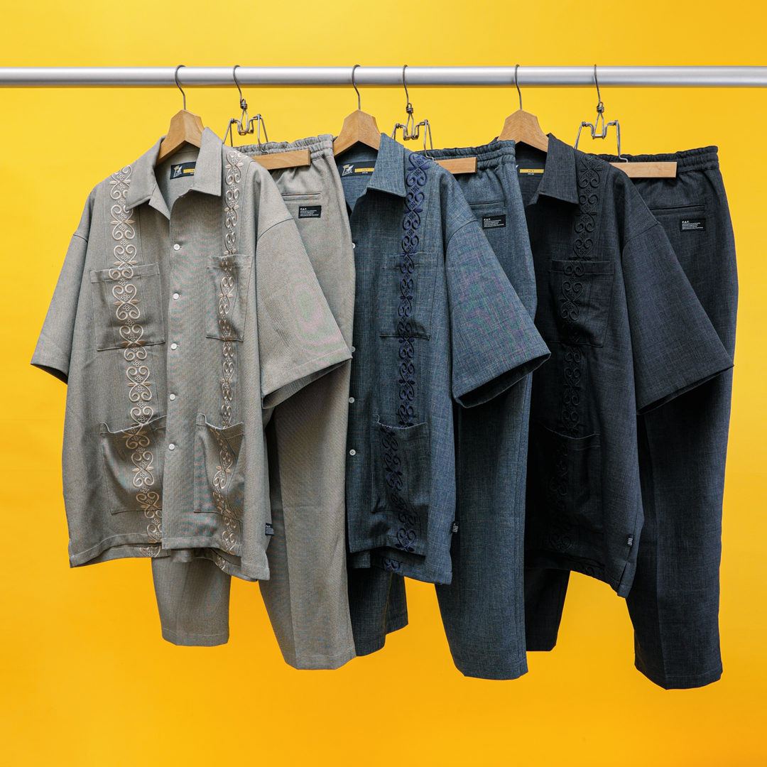 BIGシルエットのキューバシャツのデリバリー。シャークスキン生地のサラリとした肌触り。フロントのオリジナル刺繍、これを羽織れば聞こえてくるBuena Vista Social Clubのサントラ。オリジナルだけどオリエンタルムードなこのシャツがあれば、湿度の高いこの日本だって赤道近くにいる気がする。フロントに排した4つのポケットには何入れる?ラム酒や、葉巻にストローハットが似合うシャツとセットアップ展開のポリエステルシャークスキン生地で仕立てたイージーパンツは、ルーズすぎない新しいシルエットが魅力の一つ。さらにクリーズラインを入れた、キチンと感というか誠実さというかの良さの出るスラックス。裾幅も細すぎないので合わせるシューズも選ばない。どちらも一度お試しを、ぜひ!