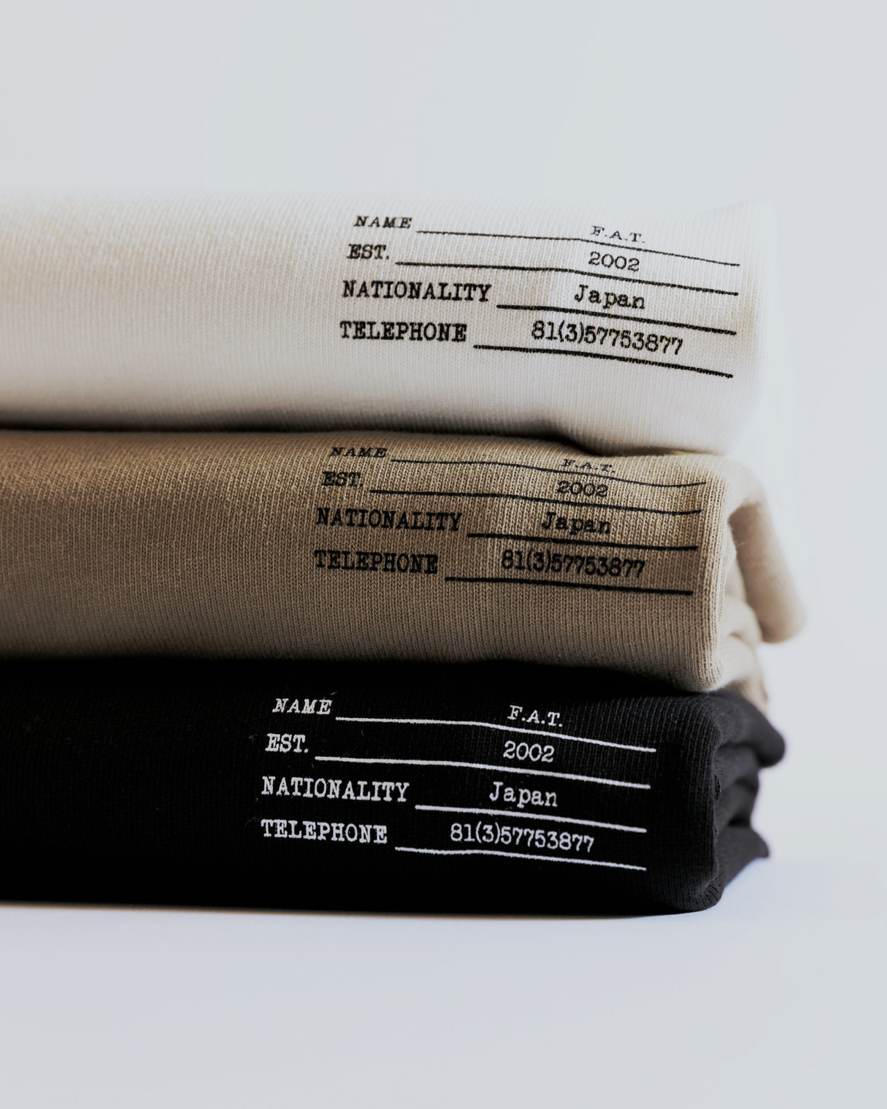 胸と背中にF.A.T.の身分証明的プリントと、左裾にはブランドタグを配したまさにアイデンティティが表現されたロンT。