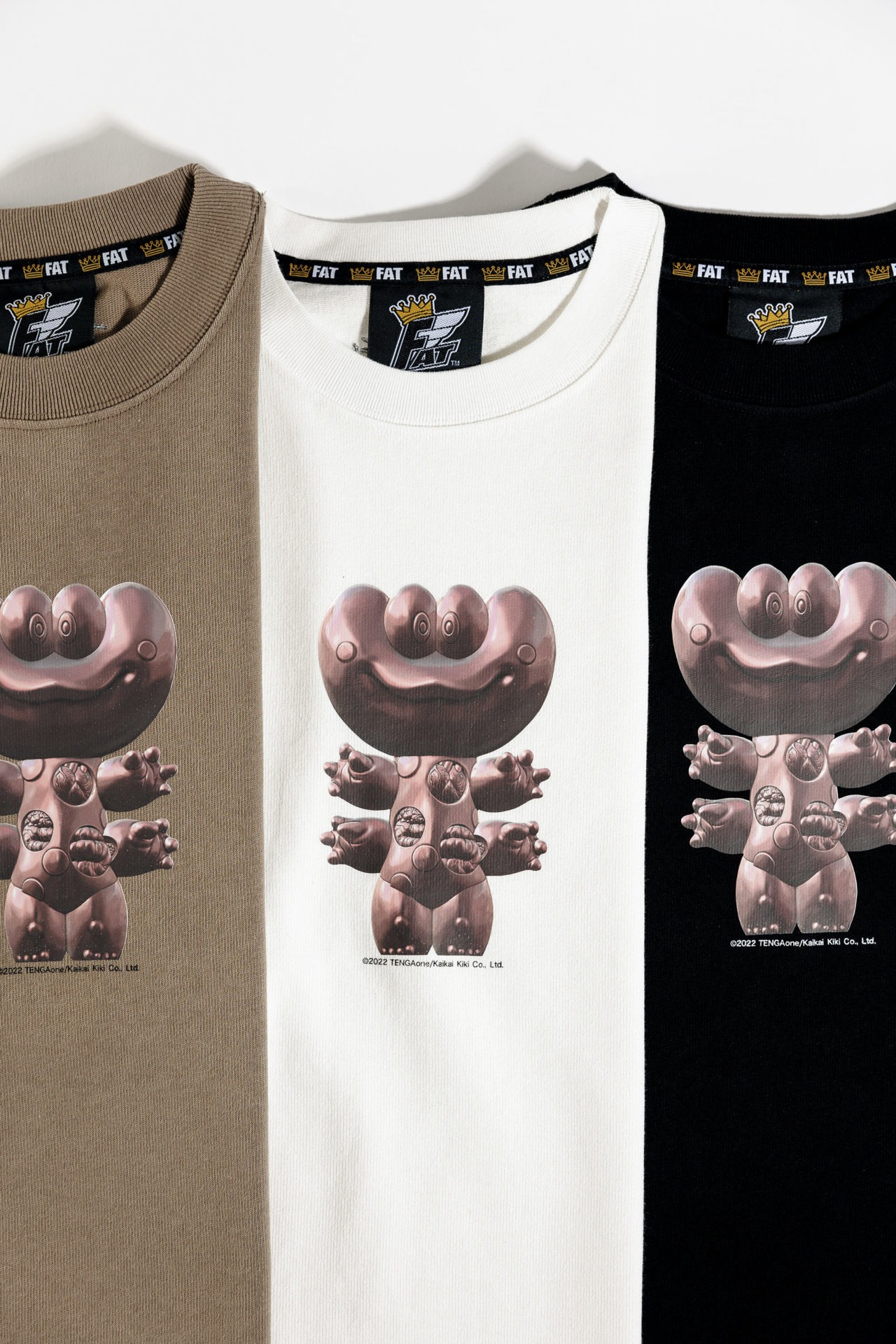 F.A.T.の今季を飾るヘッドライナーは、ずばり3人のアーティストによる威力抜群のハーモニー。2012年に開催されたグループ展『Sb FILLHARMONY』(Sb Skateboard Journal主催)を起点にした物語の続き。その3人のうちのひとり、TENGAone(てんがわん)のアイテムからいよいよローンチ。近年はMDF材を掘ったダンボール作品シリーズが世界中で高い評価を得ているアーティストとのコラボレーション・アイテムたちの登場!!!