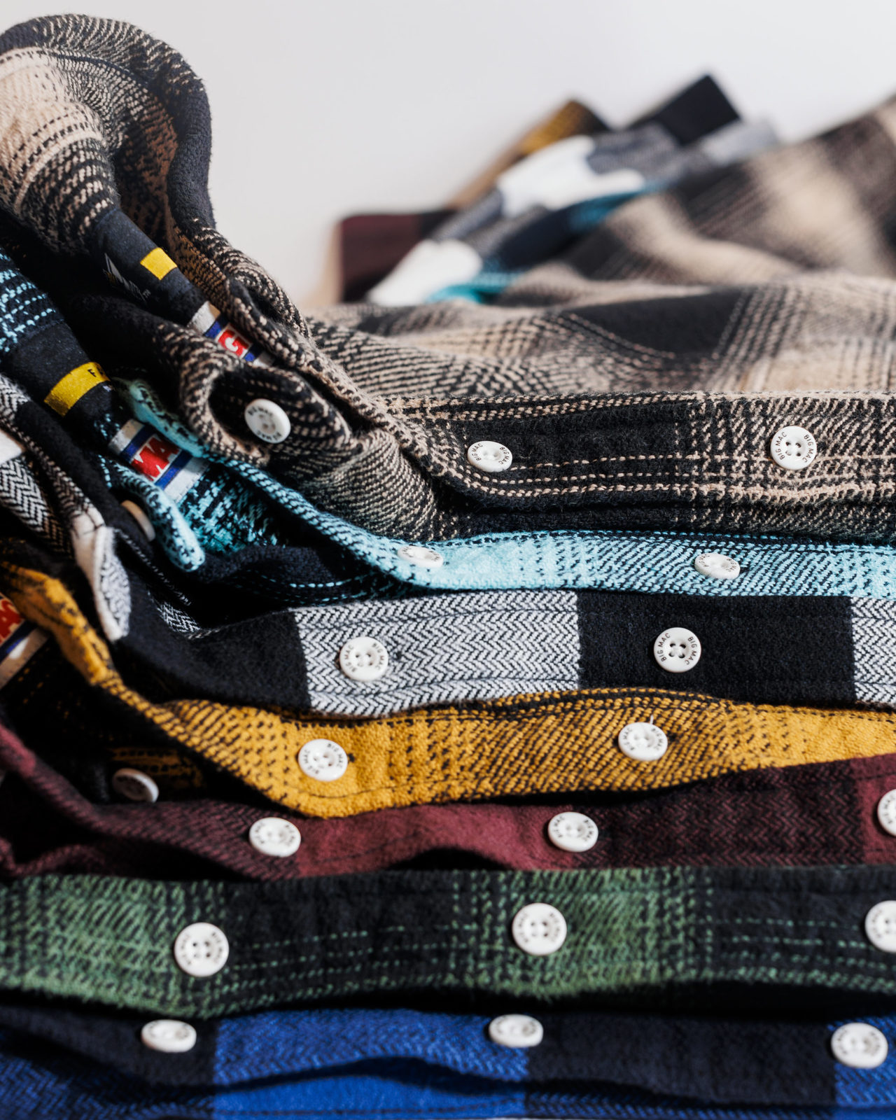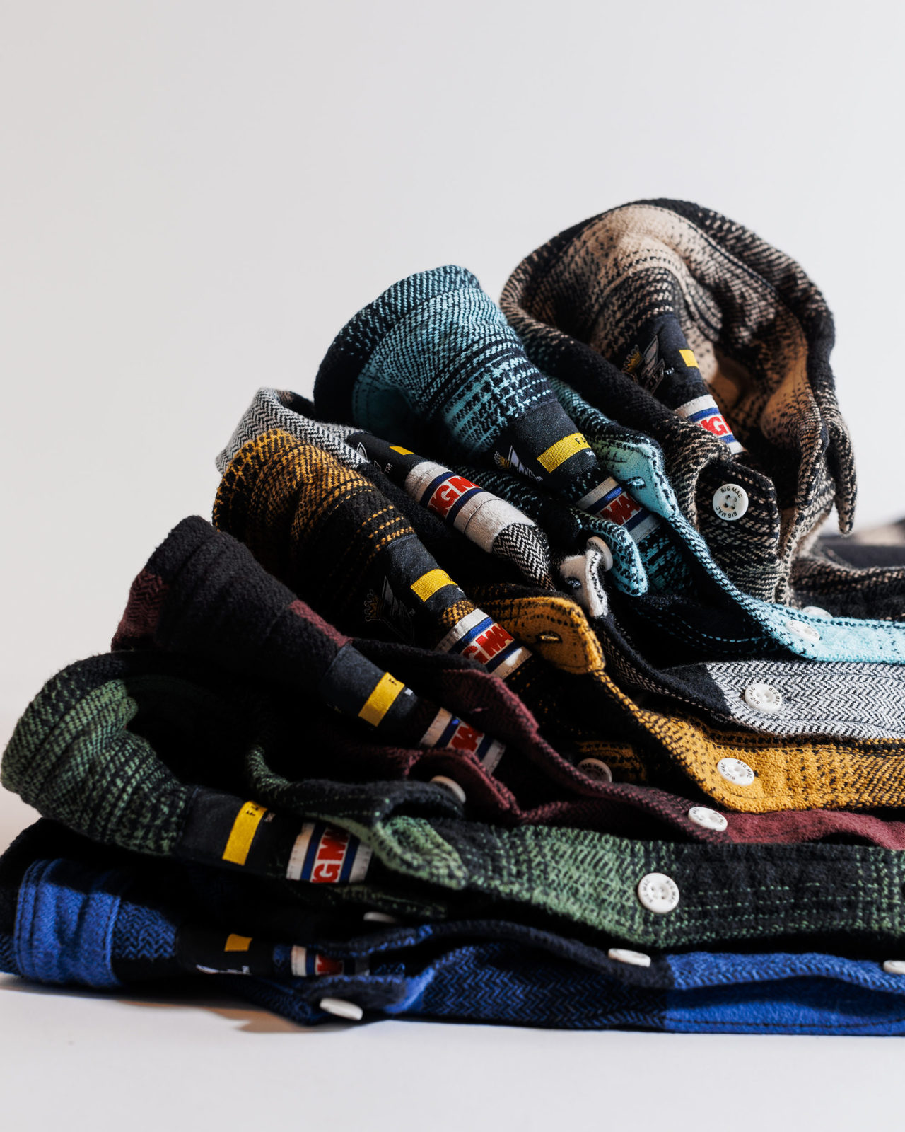 フランネルシャツでオーセンティックな存在である”BIG MAC”とのコラボレーションシャツは、F.A.T.ならではのチェックパターンとカラーリングで展開するオリジナルモデル。