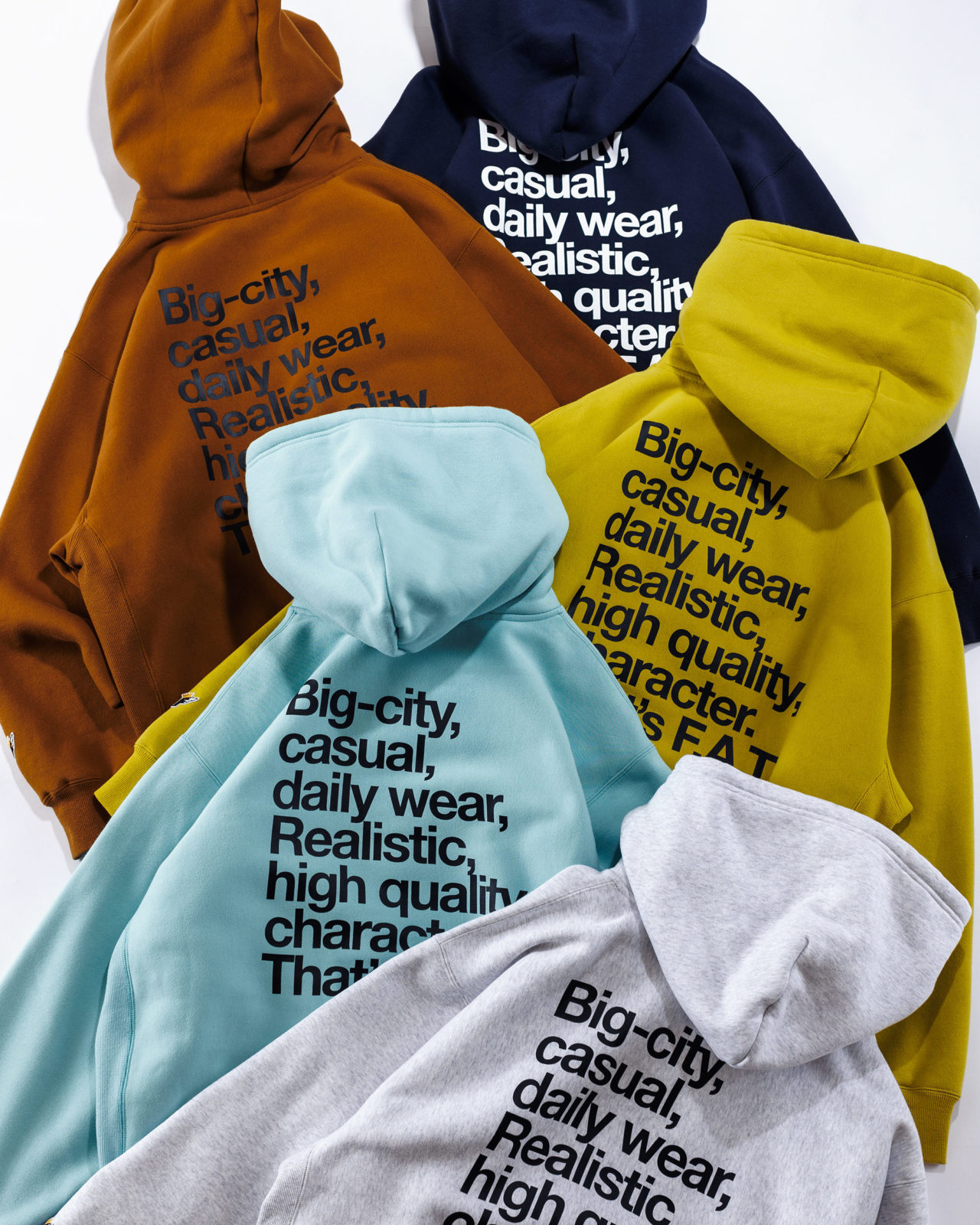 目の詰まったT/C裏起毛素材を使用したクルーネックスウェットは、アメリカンオーセンティックを感じさせる大きめに仕上げたシルエットや縫製、生地方向やサイドパネルなど細部にまでこだわったアイテム。肩幅、身幅、アーム周りを大きくとり、一枚で着た時はもちろん、インナーとしてももたつきすぎない絶妙なサイズ感。フロントのプリントは懐かしさと大胆さを感じさせるカレッジ調のフォントやサイズ。フロント、バックに入れたF.A.T.ロゴ、コンセプト。まずはシンプルに着ていただきたいアイテム。ぜひ!