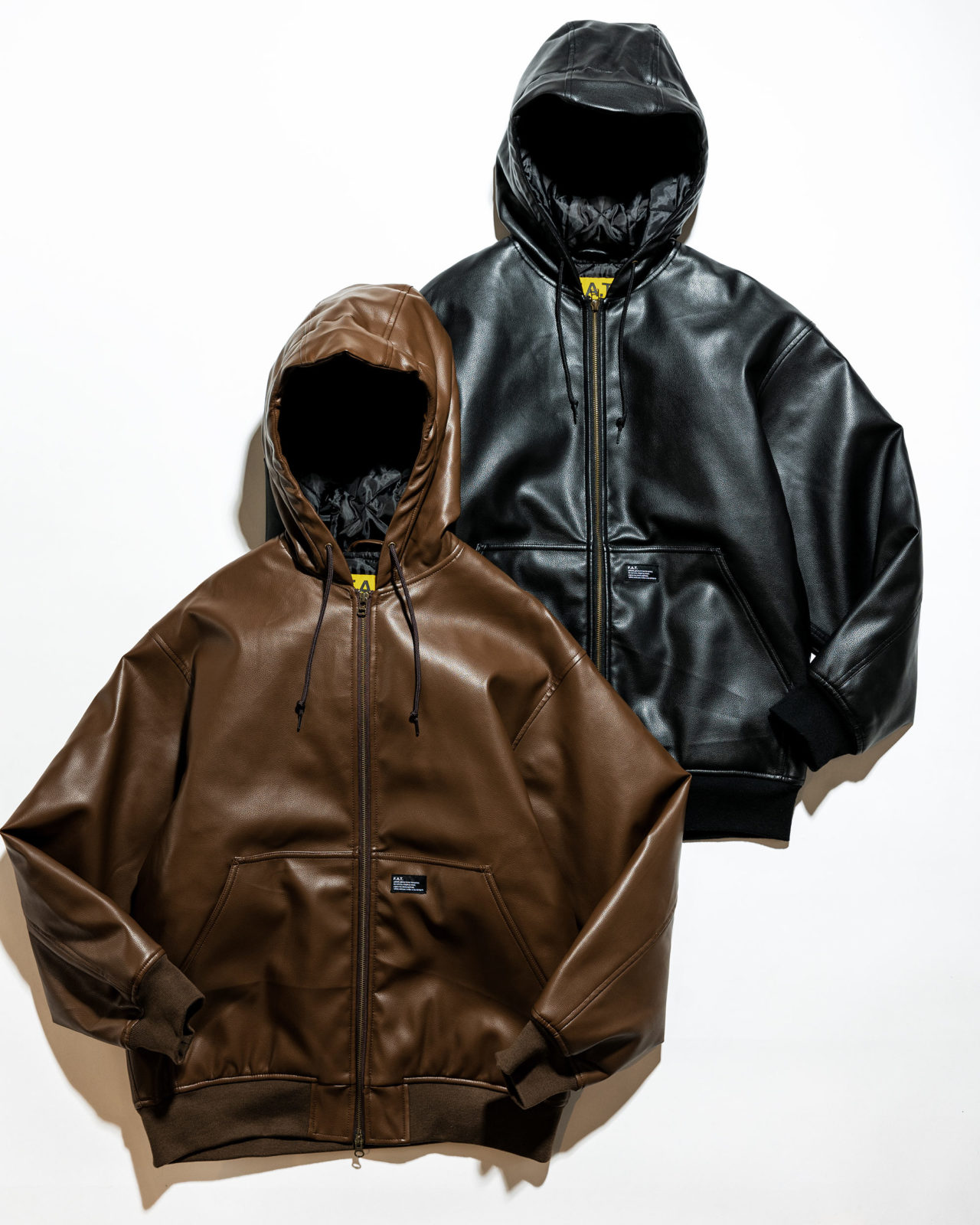 フードタイプのアウターは、これからの春シーズンに何か1枚羽織りたい時には心強いアイテム。シボ感ある素材はリアルレザーに近しい質感にこだわりもいれている。内側にはキルティングで中綿も加え、防寒性も高めている。インナーの組み合わせを変えれば長い期間の着用もできるため、この春のアウターとしておすすめな1着。ぜひ、お試しください。