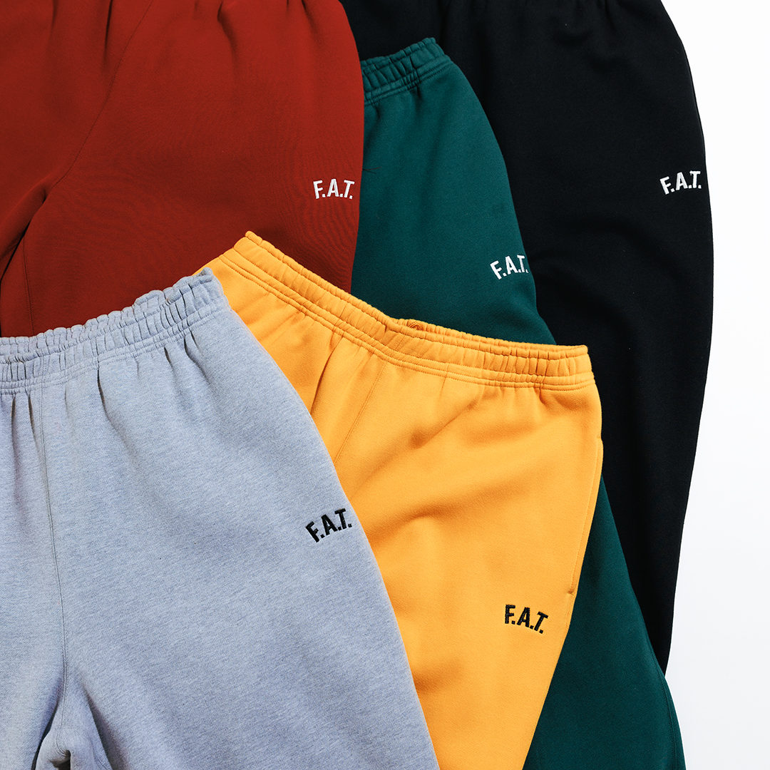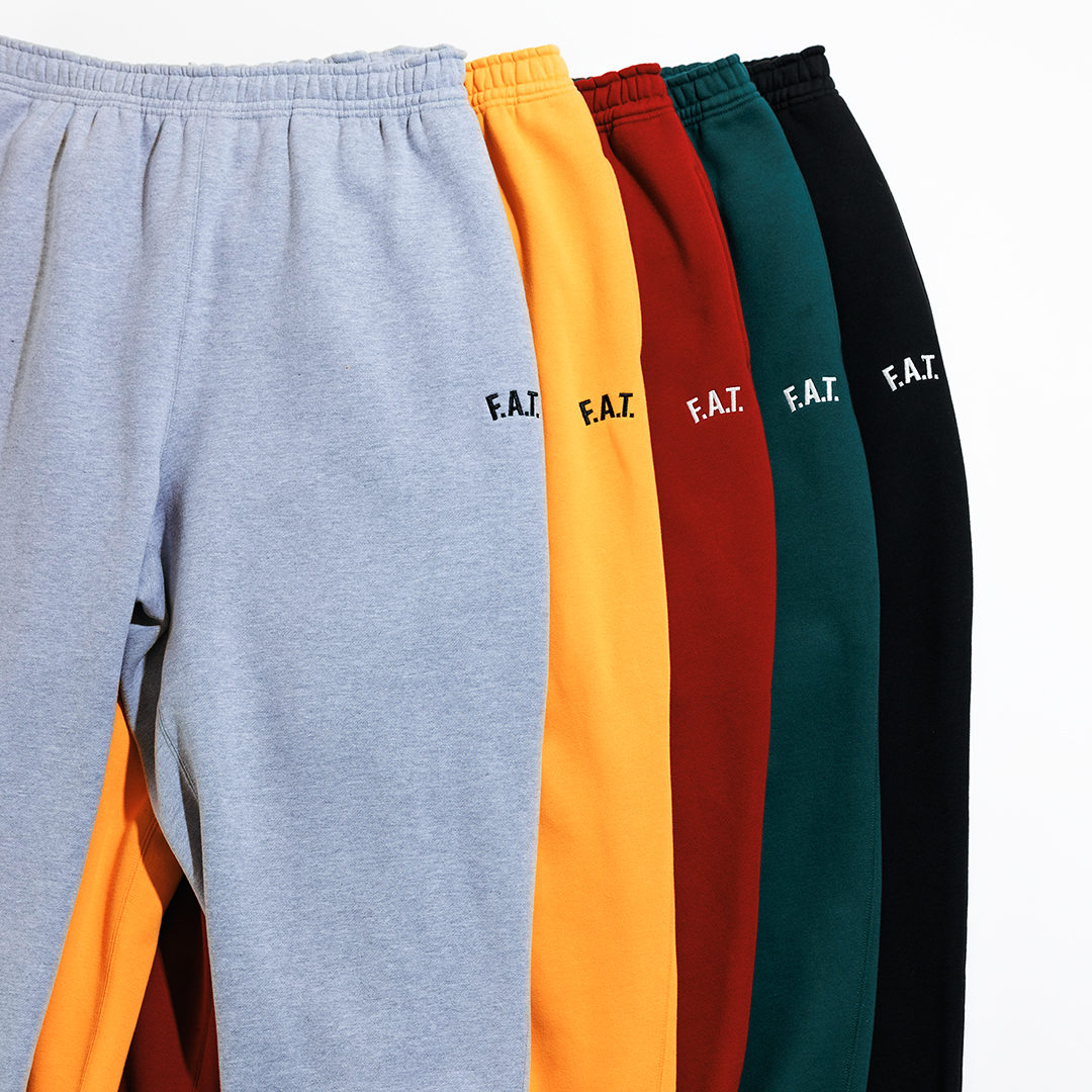 目の詰まったT/C裏毛起毛素材を使用し、肉感もありながら着心地の良さが特徴的なスウェットパンツ。F.A.T.のルーズシルエットにあたる”ELEPHANT”にテーパードを加えたデザイン。フロントのロゴ刺繍の子気味良いバランスもさることながら、カラバリは、他にリリースするクルーネックスウェット、スウェットパーカーとのセットアップも考慮したアイテム。他にもニットなどとのスタイリングもおススメです。お試しください。ぜひ!