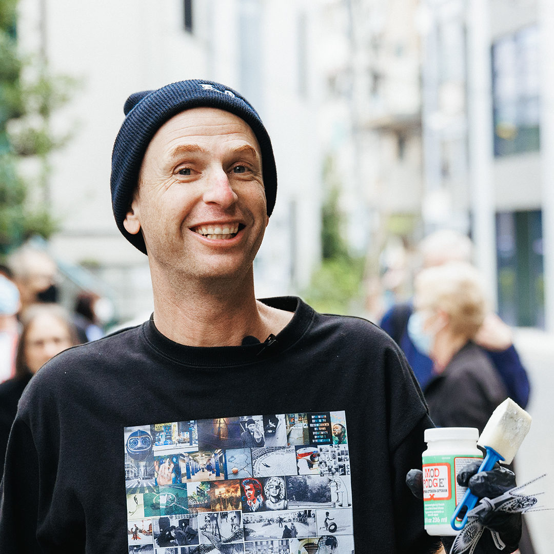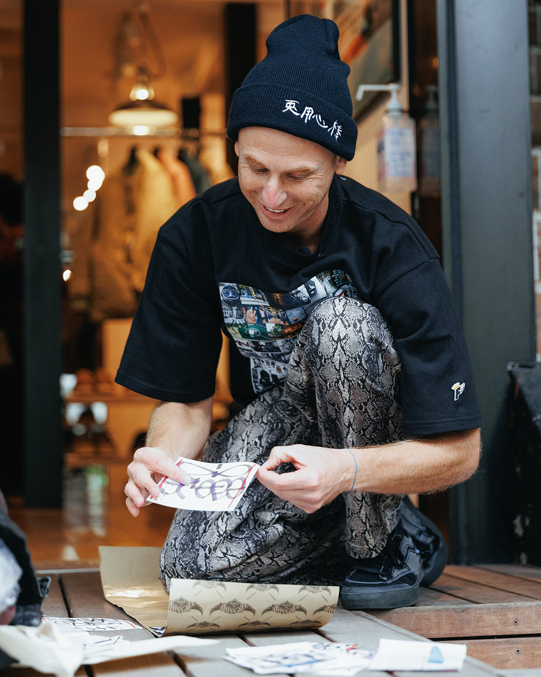 HUSKY ROUND UP名義でアートワークを世に発信し続けるスケートボーダー、Mike Kershnar(マーク)。森羅万象、彼の回りを構築するすべてがモチーフになるのだけれど、とくに彼がフォーカスしてしまうのが「うさちゃーん」と呼ぶ、ウサギたち。サンフランシスコの人気デッキブランド『ANTI HERO』のグラフィックにもなっていた彼が描いたうさちゃーん。ということで、今回はベアの13オンスTシャツ。2023年はウサギ年だけにウサギもいいけど、あえてF.A.T.は攻めのベア。彼のアートワークのスタイル(アートタイル)が全面にいかされた秀作です!