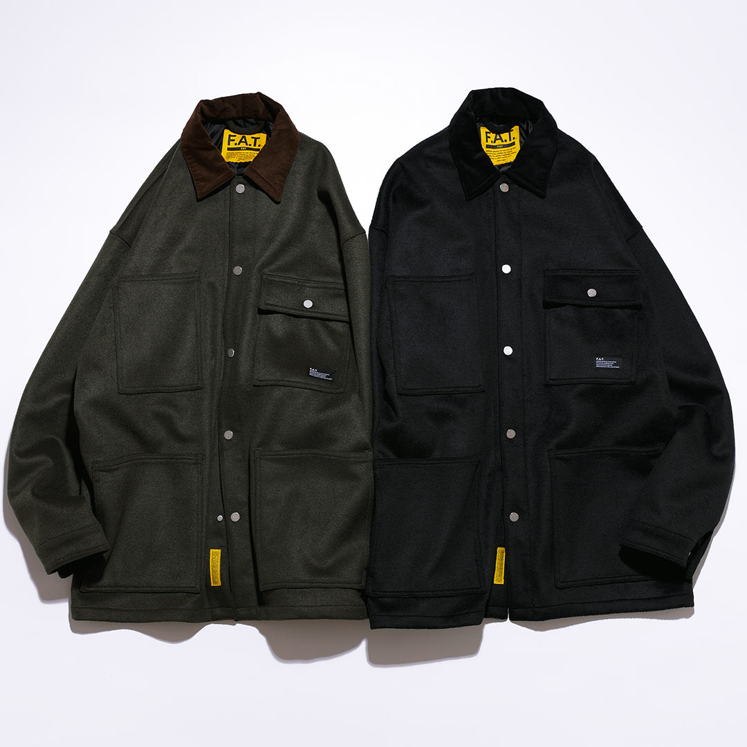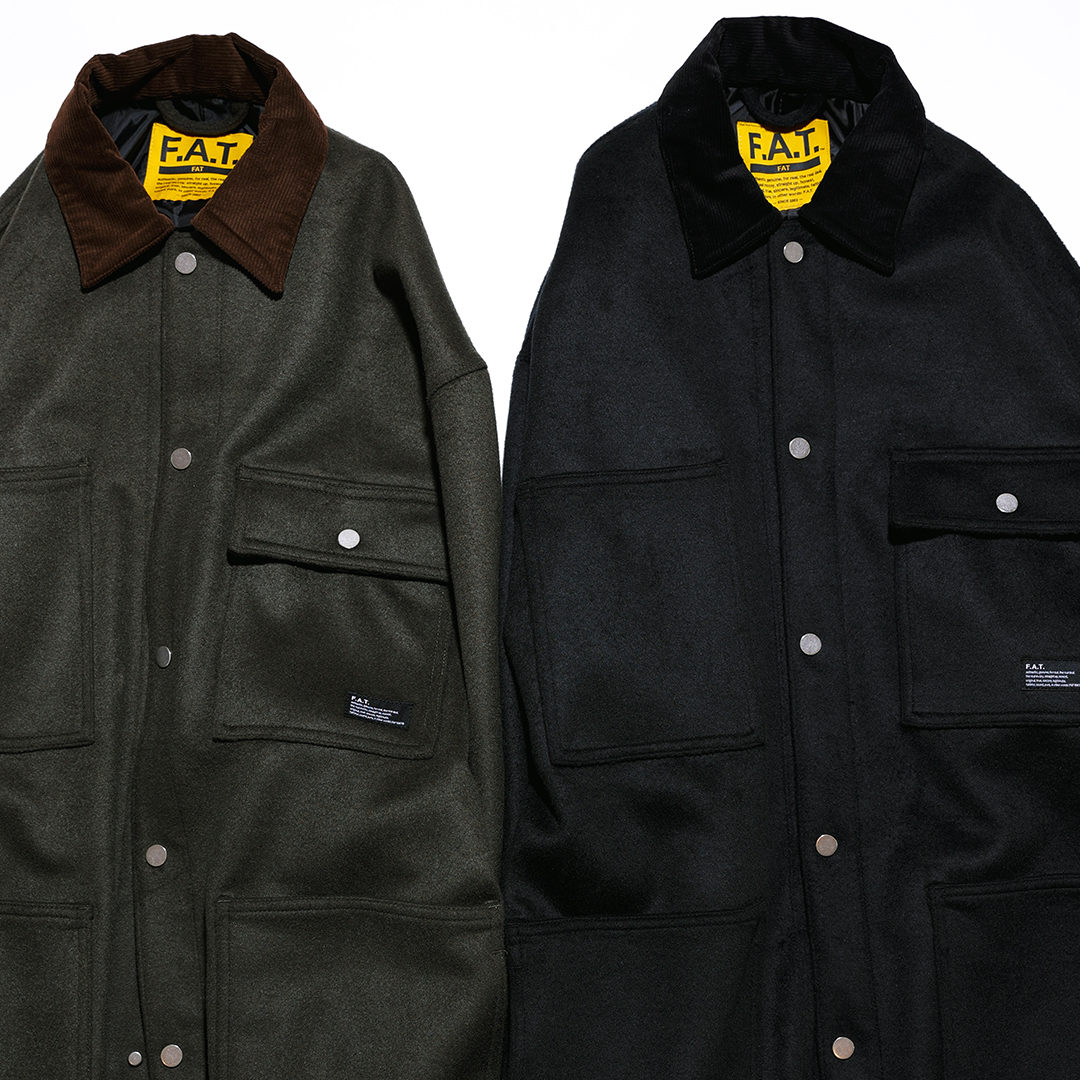 毛足の長い起毛ウール素材を使用したカバーオール。ワークウエアといえばのカバーオールをクリーンにシーズナルに落とし込んだデザインは、コーデュロイ素材を襟元に使用し切り替えたアクセント、お馴染みのフラットスナップボタン、仕切りを分けたハンドウォーマー付き箱ポケット、シンプルに仕上げつつ拘りを詰め込んでいます。ガバッと羽織れてイージーケア(ラフに)でレイヤード(重ね着)はしやすいF.A.T.らしいアイテムです、ぜひ!!!