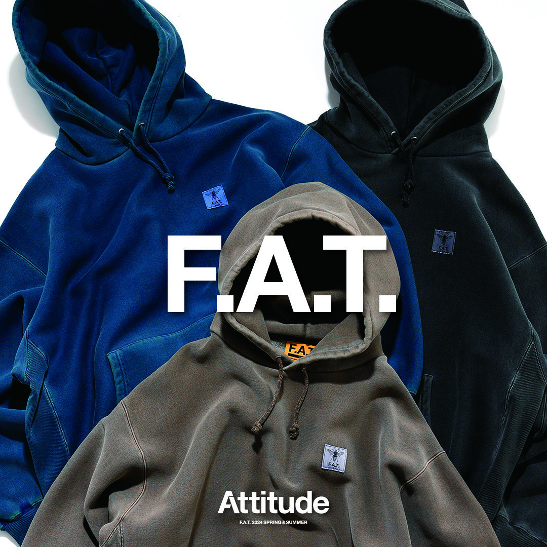 目の詰まったT/C裏毛起毛素材を使用して、絶妙な色合いとアタリ感が特徴的なピグメント加工を施したスウェットシリーズ。アイコンの蜂ロゴをワンポイントにシンプルな織タグで表現したF.A.T.らしいデザイン。他にリリースするスウェットカーディガン、スウェットパンツとの組み合わせも考慮したアイテムです。ぜひ!!!