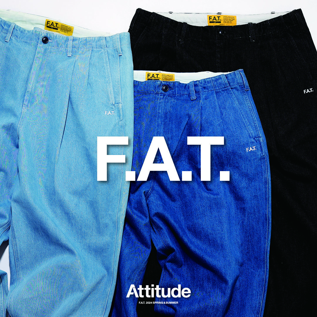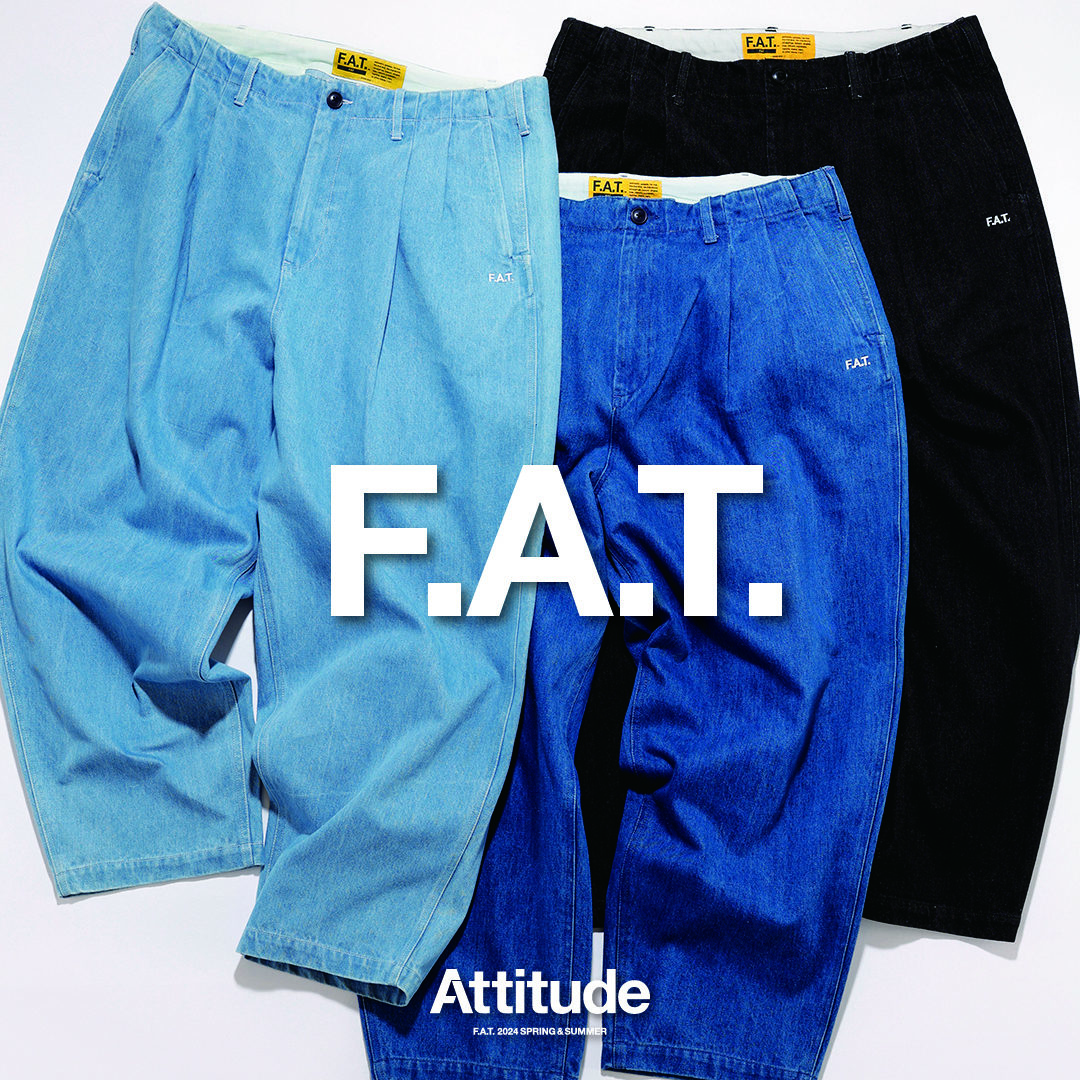 FAT定番のデニムよりも軽めな12ozデニムを使用し、フロントに2タック加えたバギーシルエットのデニムパンツ。