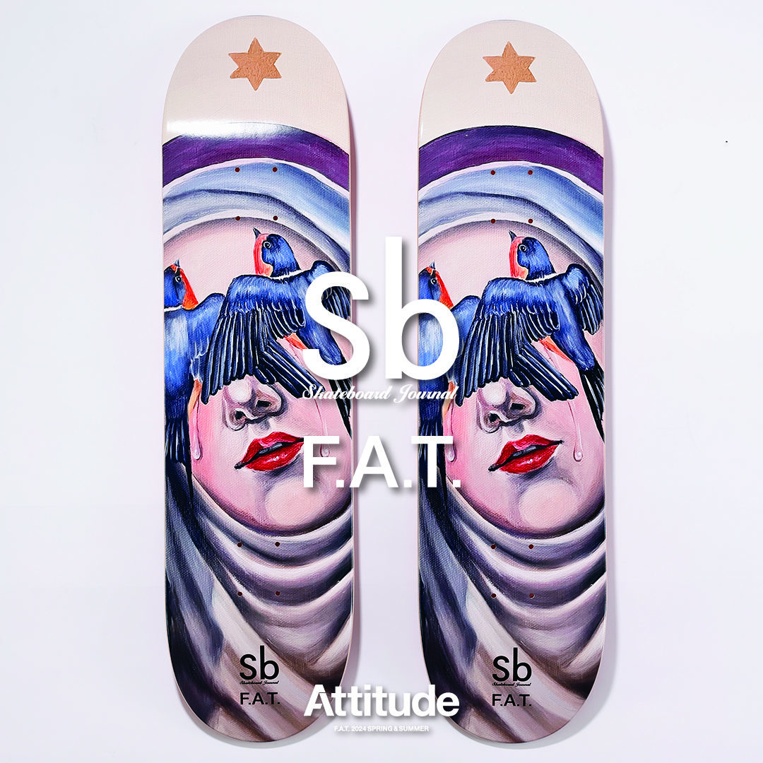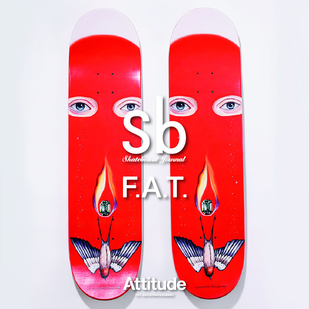 前コレクションのFATEのデッキが鮮烈だった。バイナルの7インチでA面もB面も捨て難いよ。というセレクター泣かせの1枚のように、両面アートでスケーター泣かせの1枚となっていた。そして、今回。榎本マリコ自身初というスケートデッキへのグラフィック。もれなく今回もデッキテープを貼る側にも作品があしらわれている。「隠れちゃう方にもデザインするなんてもったいない、というか信じられないよー」とプレス工場の現場もびっくりなアイデアだけれど、そこにデッキテープを貼ってスケートするか、そのまま作品として飾るか。それは手にとって反応してくれた人の自由だ。素晴らしい絵を見つめながら、楽しんで悩んでくれたらいい。