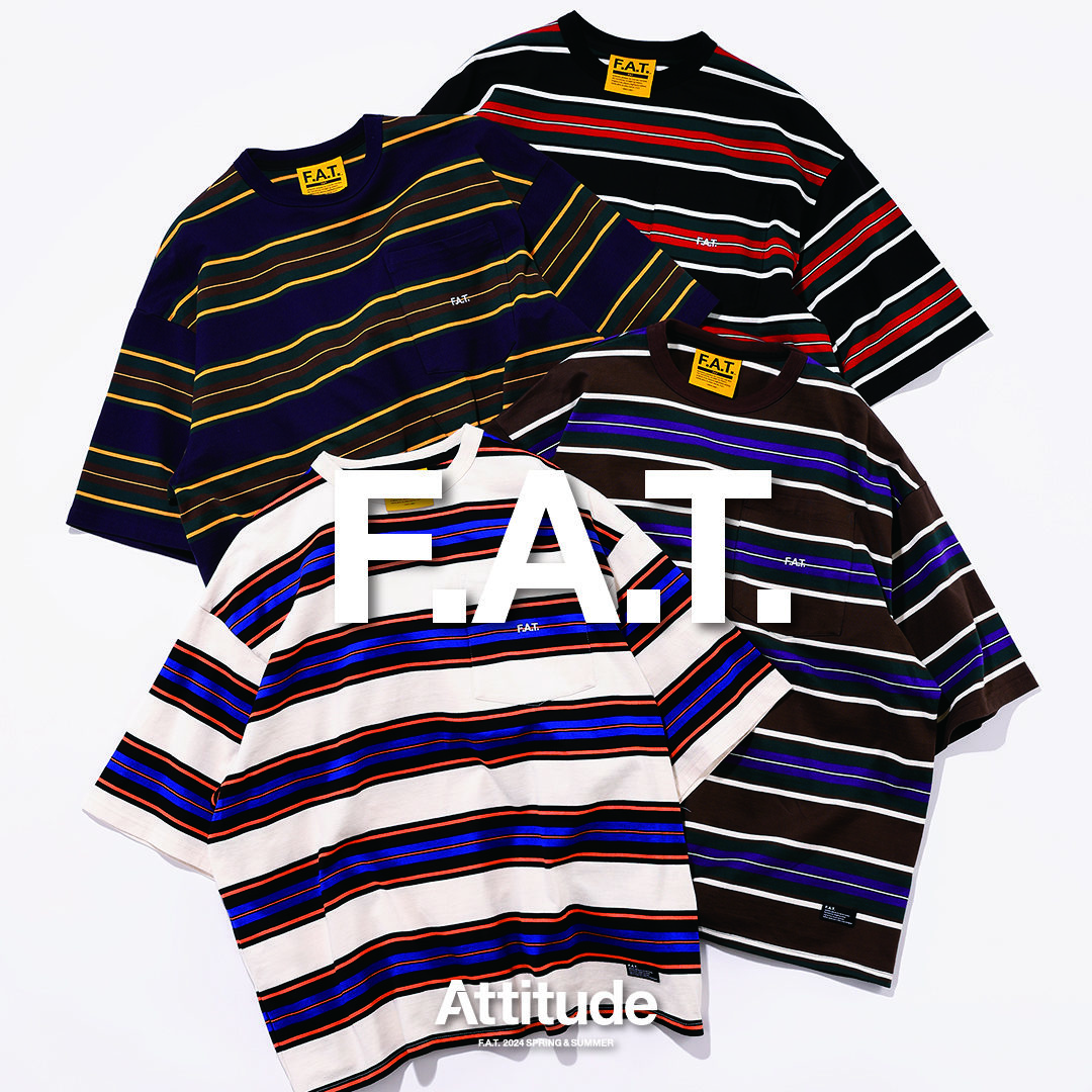 F.A.T.独自のビッグシルエットパターンを落とし込んだ、定番の通称:デカTee!!!のボーダーVer. こちらは8ozのいわゆるな厚みで仕立てた天竺生地。糸からオリジナルで編み立て13oz同様にオリジナルな生地です。無地のデカTeeとシルエットは変わらずなので、胸ポケットのサイズ(大きく)と刺繍、裾のネームと加えていますが、あくまでもシンプルに着ることを想定した作りにしています。今年も気が付いた時にはもうない!ってアイテムです。お早めに、ぜひ!!!