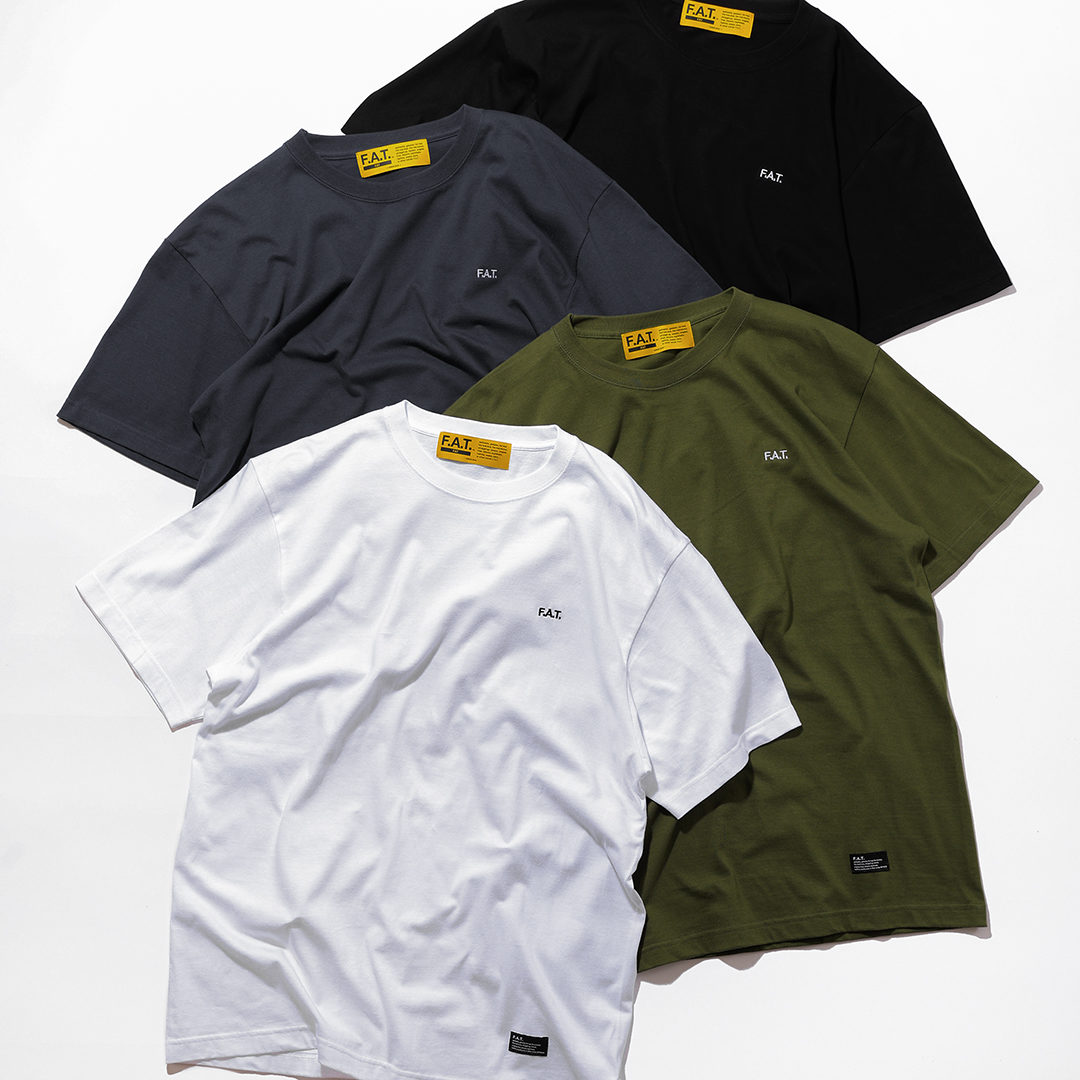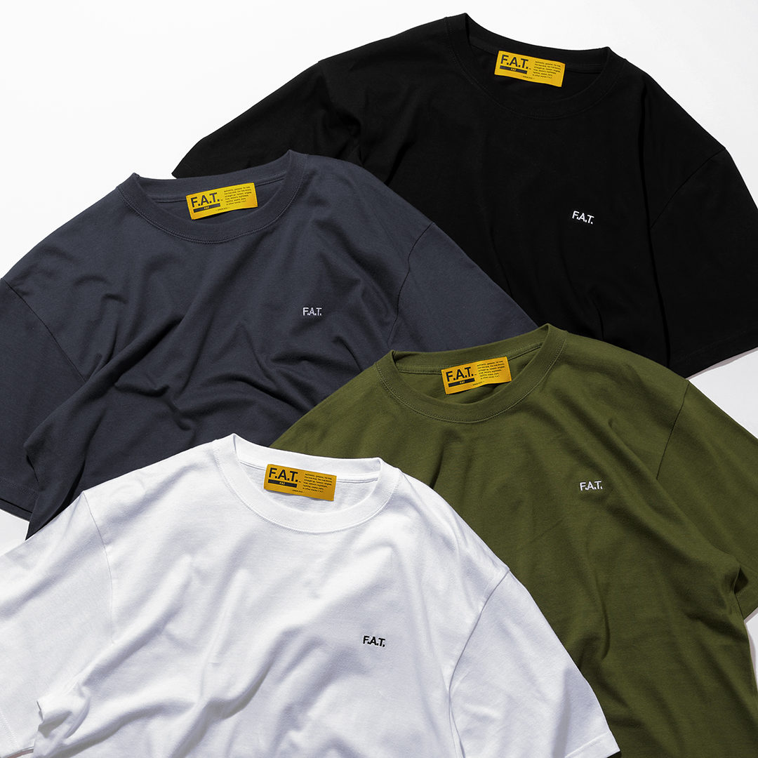 F.A.T.定番の13ozではなく、一般的なTeeくらいの5.6oz天竺素材のカットソー。昨年からリリースしている定番デザインは胸に刺繍で施したロゴ、裾にはブランドタグを配したシンプルデザインで仕上げ、合わせる洋服を選ばない万能Tee。一枚着としてはもちろん、お手持ちのシャツのインナーとしてさりげなく主張するデザインと、大きすぎないサイズ感も魅力的。お試しください、ぜひ!!!