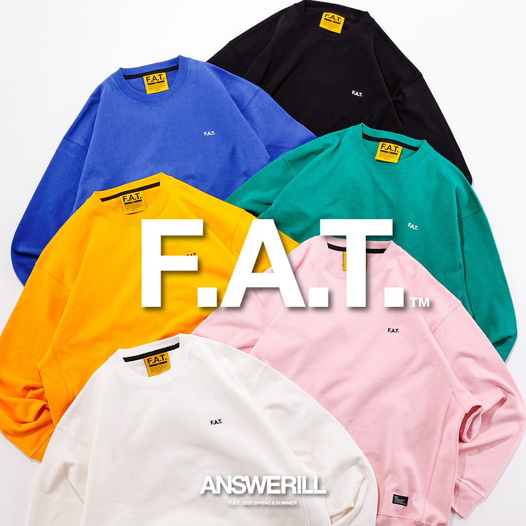胸にロゴ刺繍を加えたシンプルなスウェット。。。ではなく、F.A.T.の代名詞でもある、糸からオリジナルで編み立てた肉厚13oz生地を使用したクルーネックカットソー。通常よりも肩幅、身幅を広くとったビッグシルエットでリブやサイドパネルを備え、スウェットライクな着こなしを楽しめるアイテム。13oz Teeのカラーパレットから6色でリリース。お試しください、ぜひ!!!