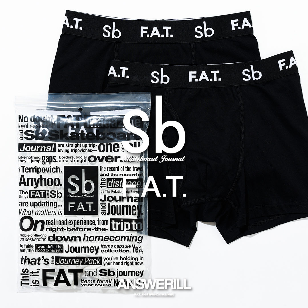 Sb Skateboard JournalとF.A.T.による“JOURNEY PACK”シリーズのアイコン的アイテム、それがパック・アンダーウェア。パックもののボクサーパンツだけで旅のアンダー界隈は足りること。そこが大事。気分によってパンツの表情を変えるより、パンツはいつでもシンプルかつ清潔で安定飛行がいい。ノンストレスってほんと素敵で快適。下着の種類や銘柄に迷った時は断然にこれ。