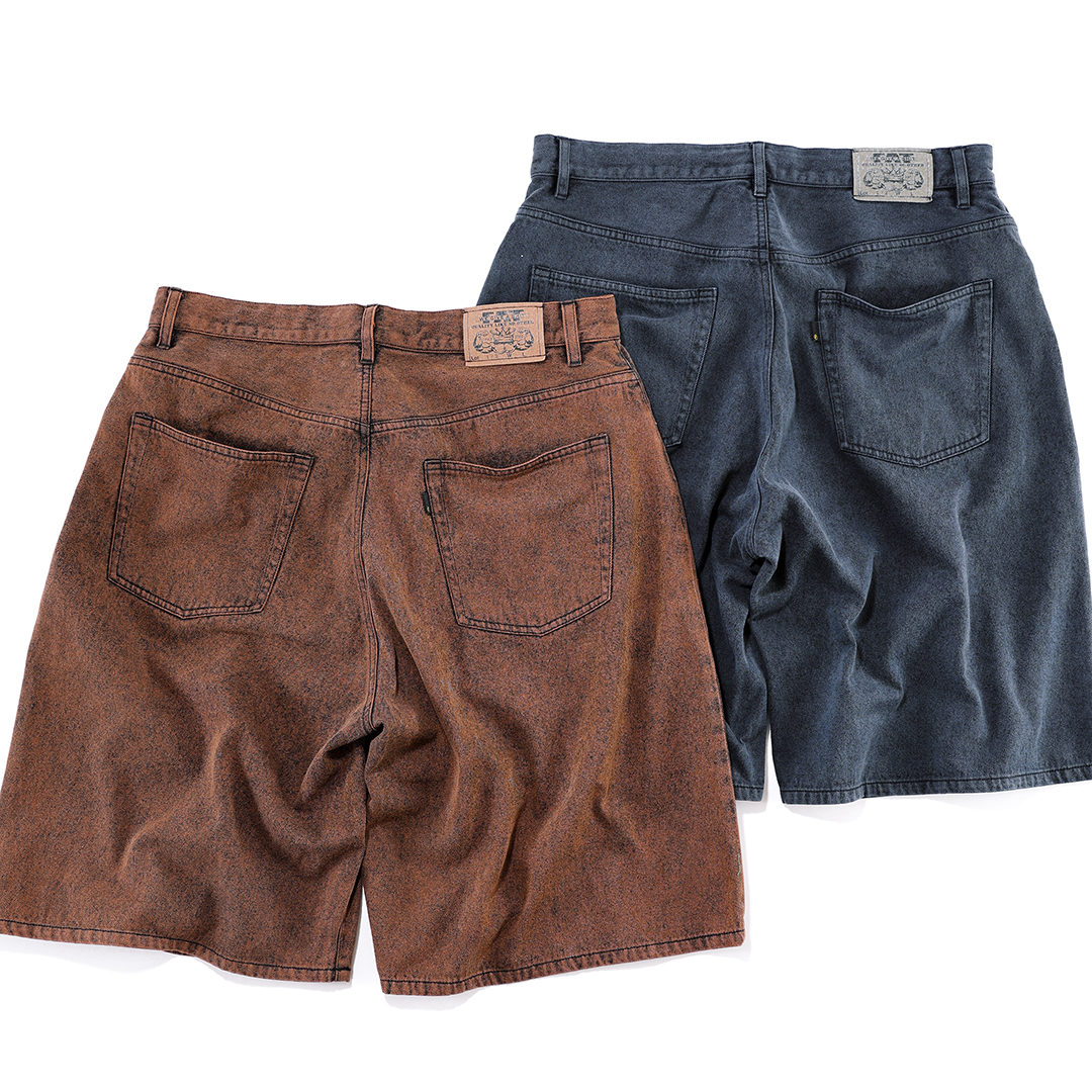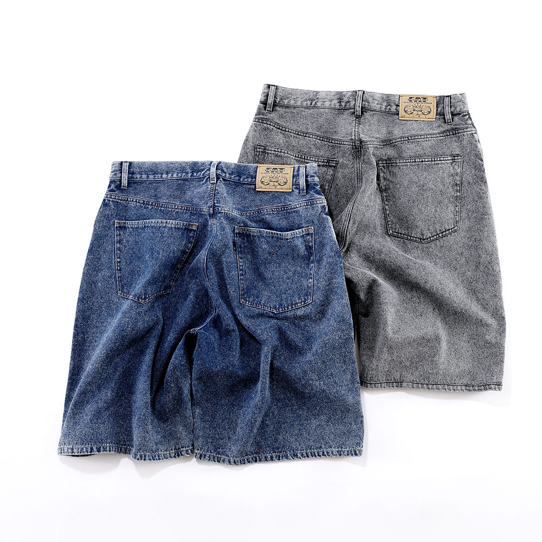 穿き心地が柔らかな11ozデニムを使用した新型のバギーショーツ。F.A.T.デニムの代名詞”247”をベースにレングスを膝下まで伸ばし、裾幅を広げこれまでになかったボリュームあるシルエットが特徴。ワンウォッシュ、ケミカルウォッシュ、ケミカルウォッシュ+オーバーダイ加工を施した全3種類です。お試しください、ぜひ!!!