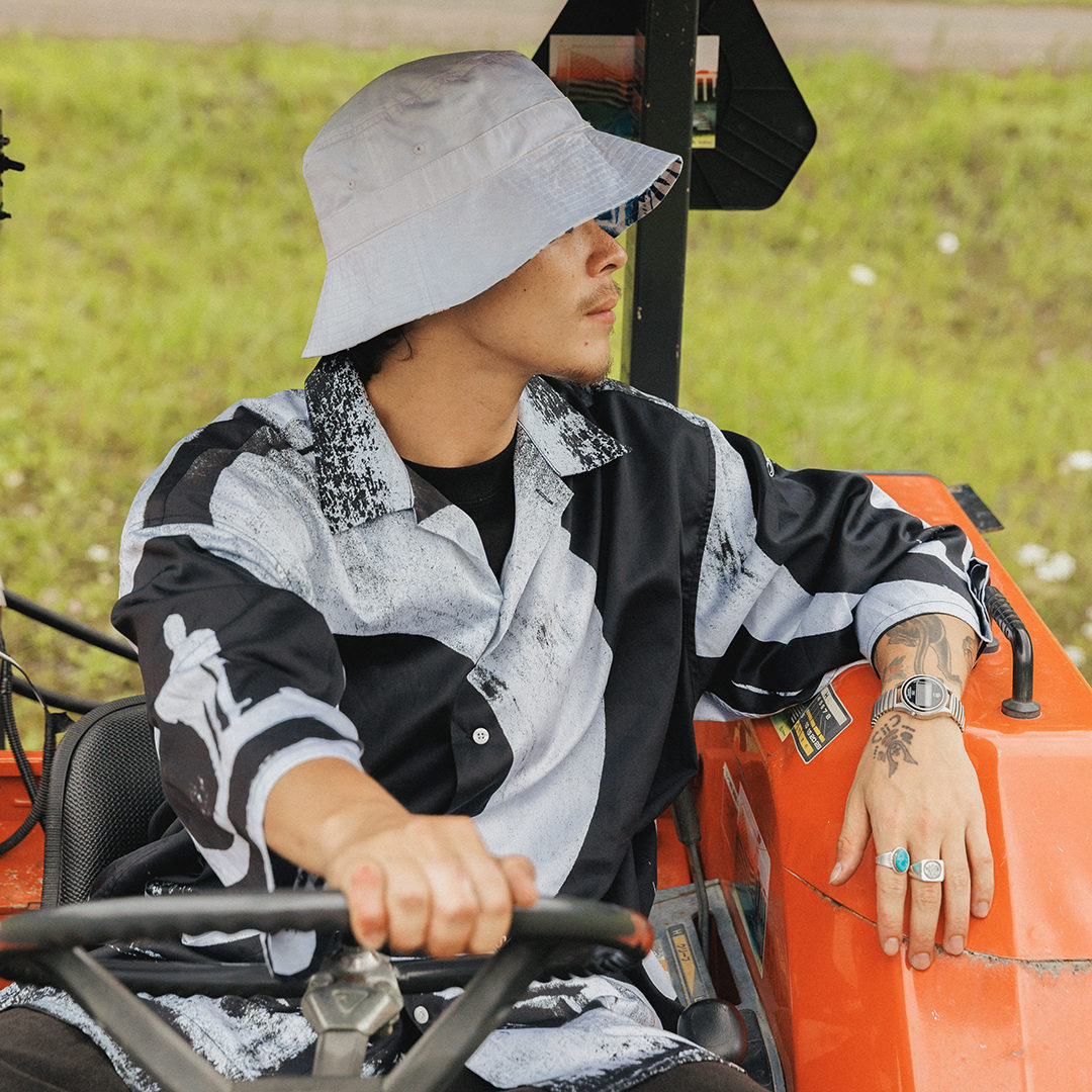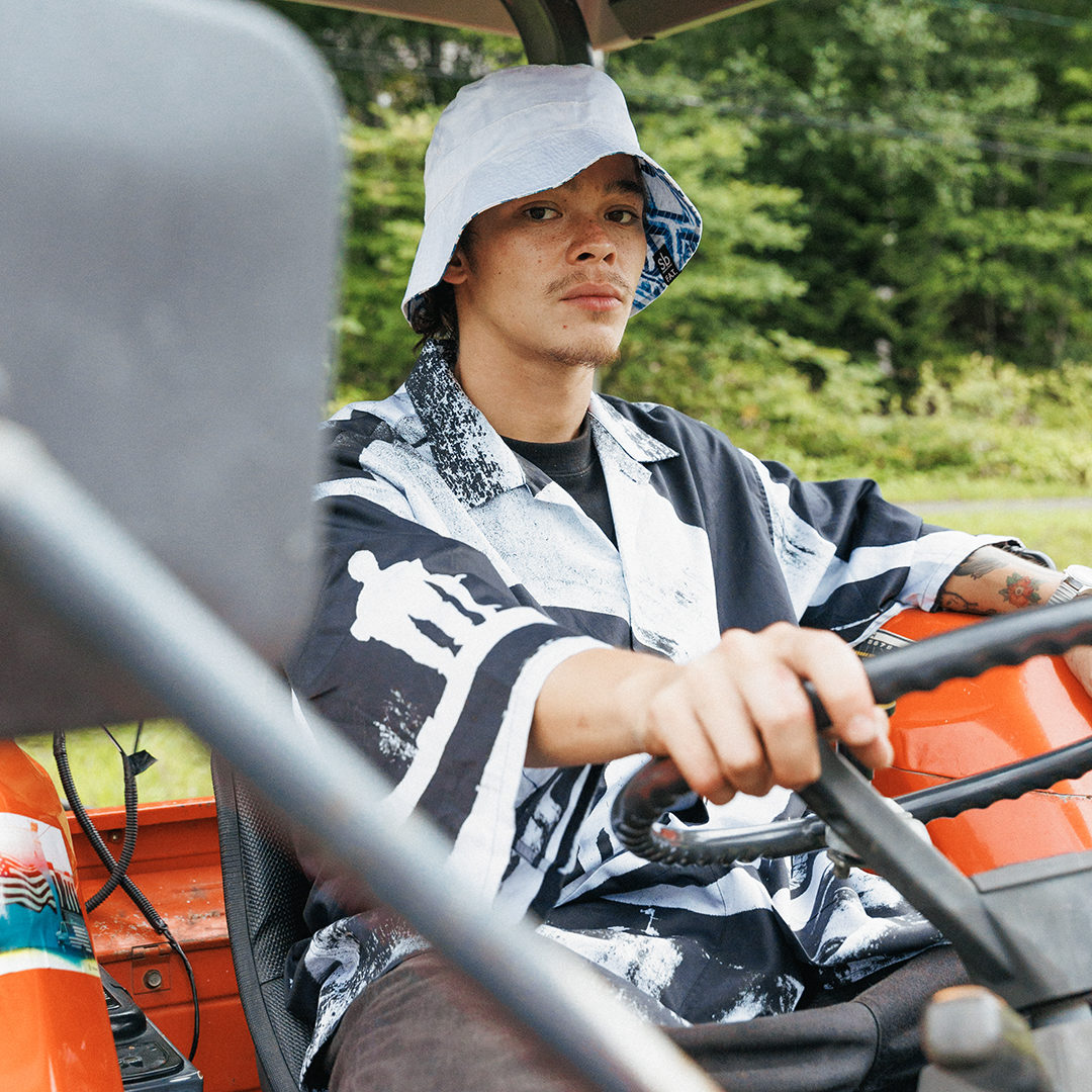 “JOURNEY PACK”シリーズのアセット・アイテム、パックTシャツ。リリースごとに、定番カラーに新色を差し込んでいくのがF.A.T.的心地よき気狂いピエロなローテーション。毎シーズン、リリースしたら即完売してしまうコンテンツなので、ティファニーブルーをみなさんがどのように着テ遊ブのか、楽しみな1枚、というかパー・パック2枚。