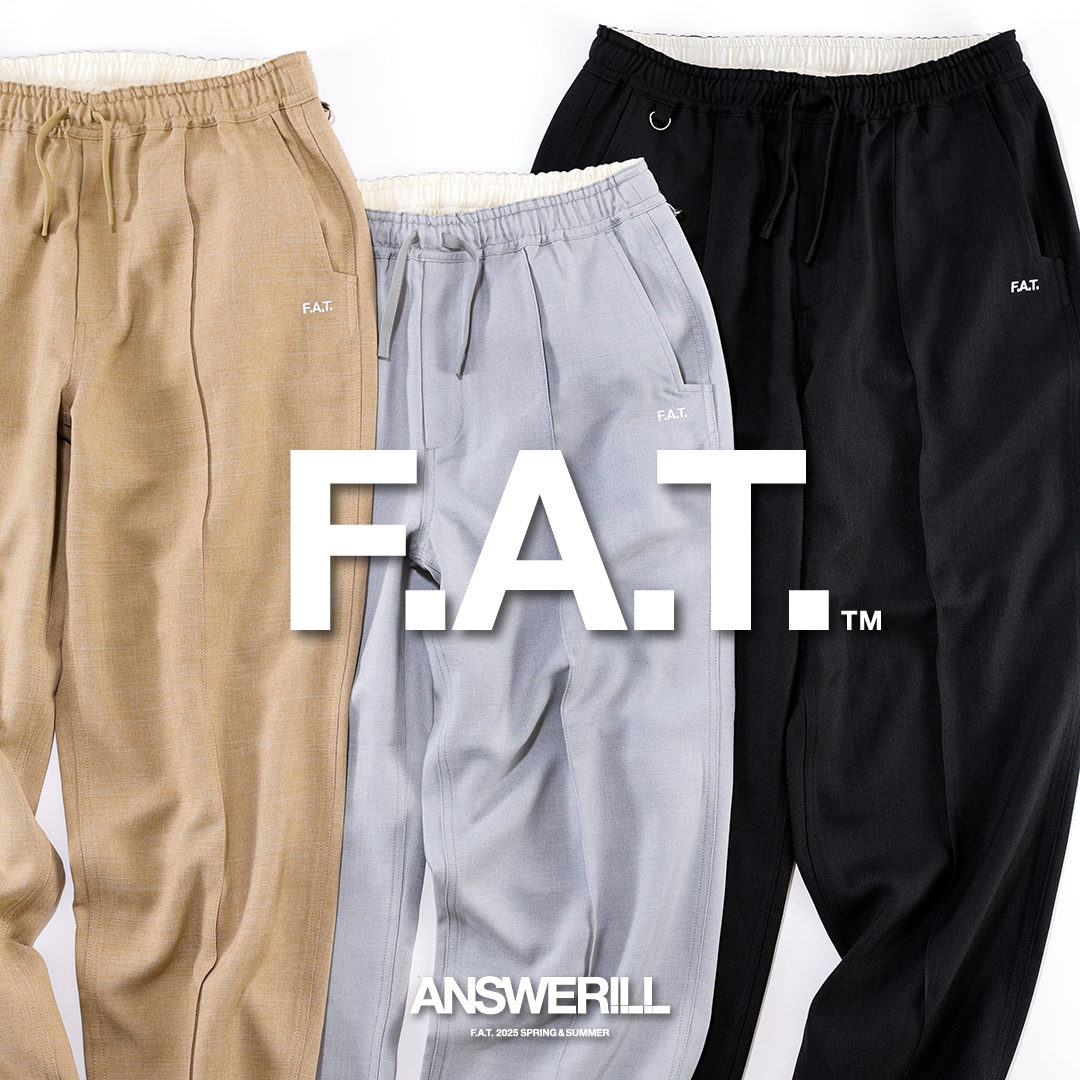 それぞれ異なる素材感とデザインながら、F.A.T.らしい空気感とシルエットを共通項に持ち、自在なスタイリングを楽しめるコレクション。お試しください、ぜひ!!!