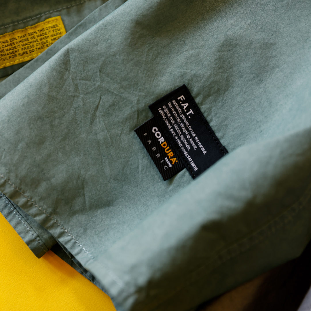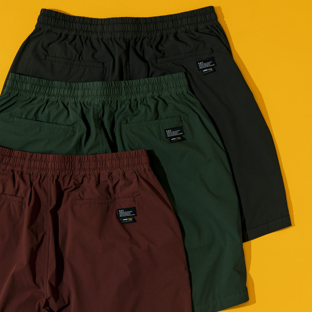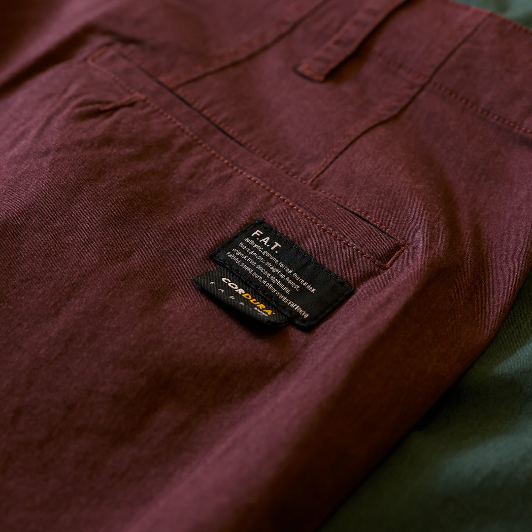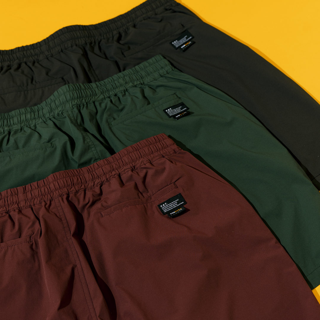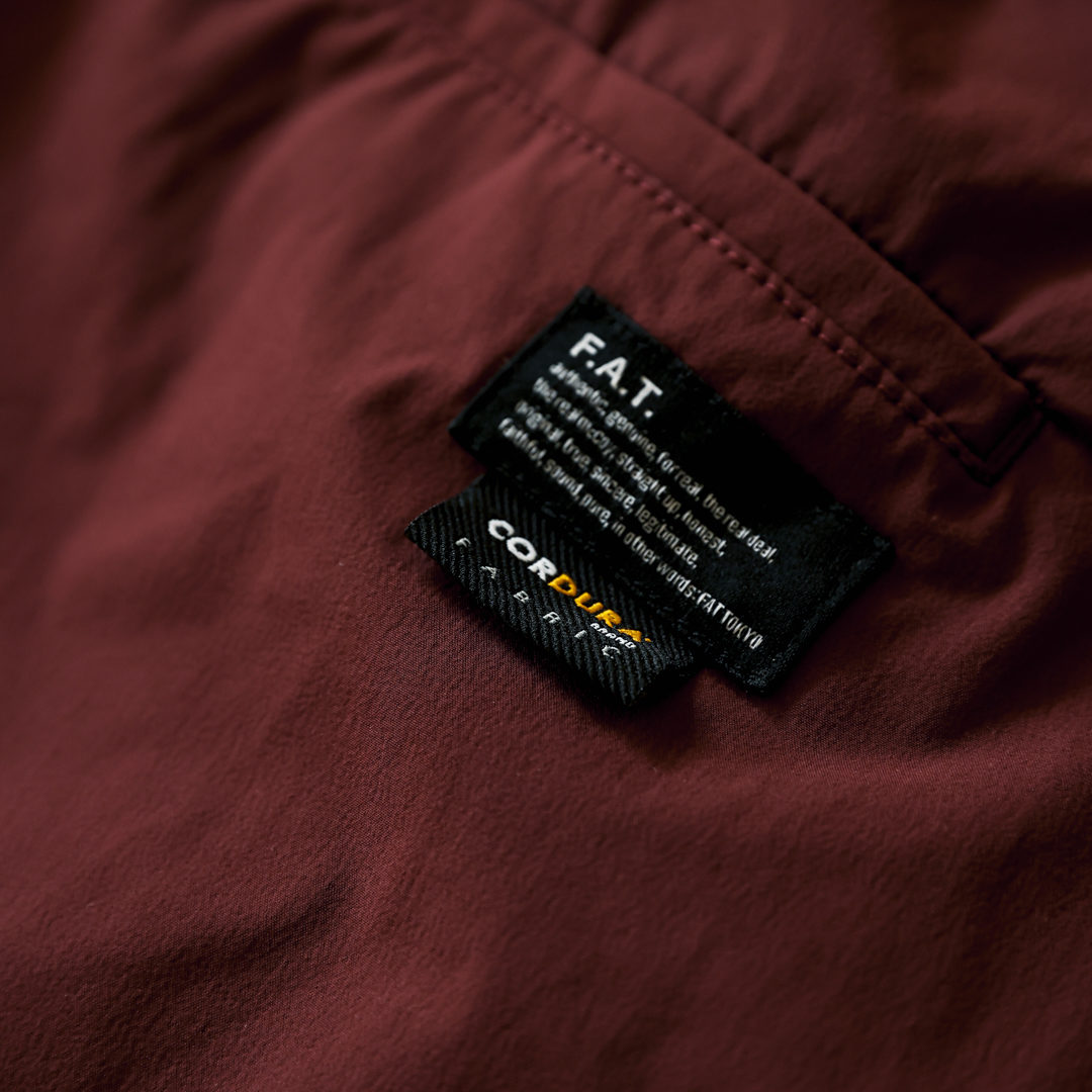 F.A.T.らしい、スタッフみんな大好きな、フロントに2プリーツ入れた、ワイドシルエットのパンツもCORDURA®ファブリックを使用したストレッチツイル素材。