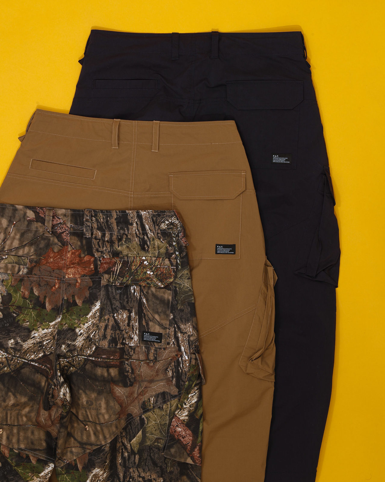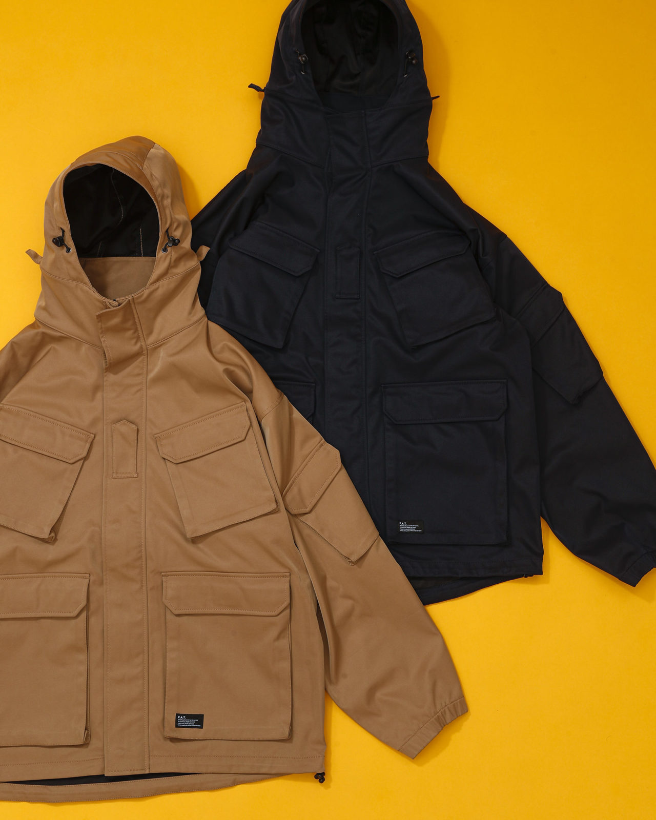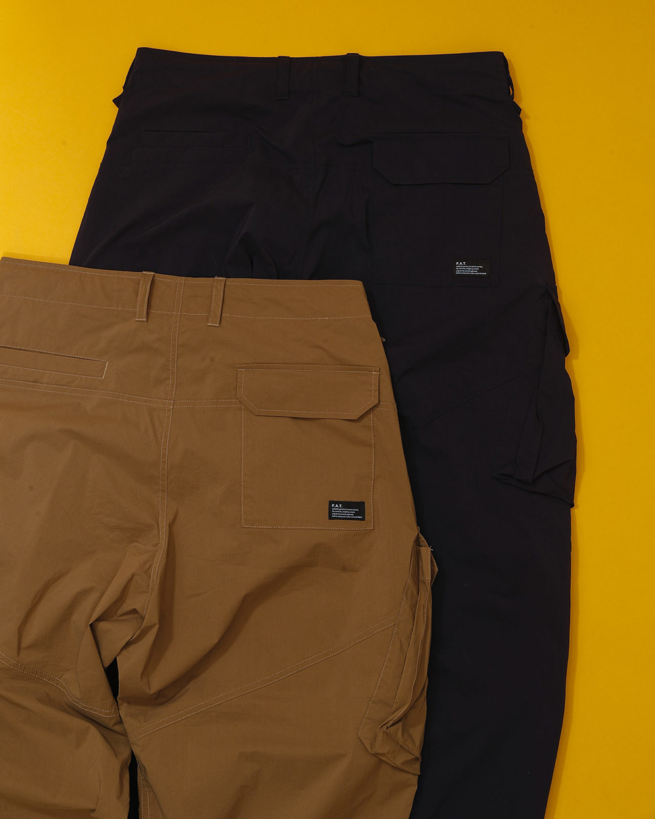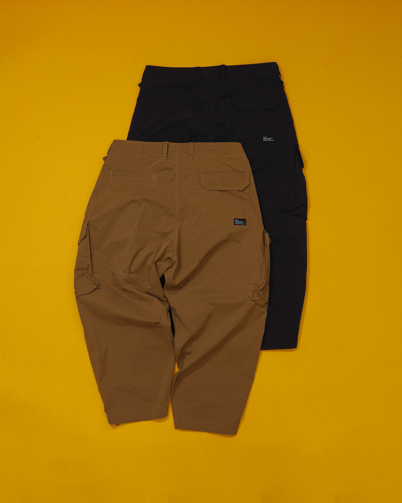 イギリスのアーミースモックをモチーフとしたジャケットがリリース。この形によく見られる、コットンツイル、リップストップではなくボンディング素材。フードも脱着ではなく収納できる、ミリタリーアイテムならではの無骨さと実用性を兼ね備えたデザイン。パンツはミリタリーのオーバーパンツ並に極太なカーゴパンツもラインナップ。キレイにボリュームが出るようにフロントにタックが入っている!サイドポケットに物を出し入れしやすい斜めにポケットを配している!適度にストレッチが効いている!つまり気が利いている。穿いてくれた方からそんな話を聞いているのでどちらも一度お試しを、ぜひ!