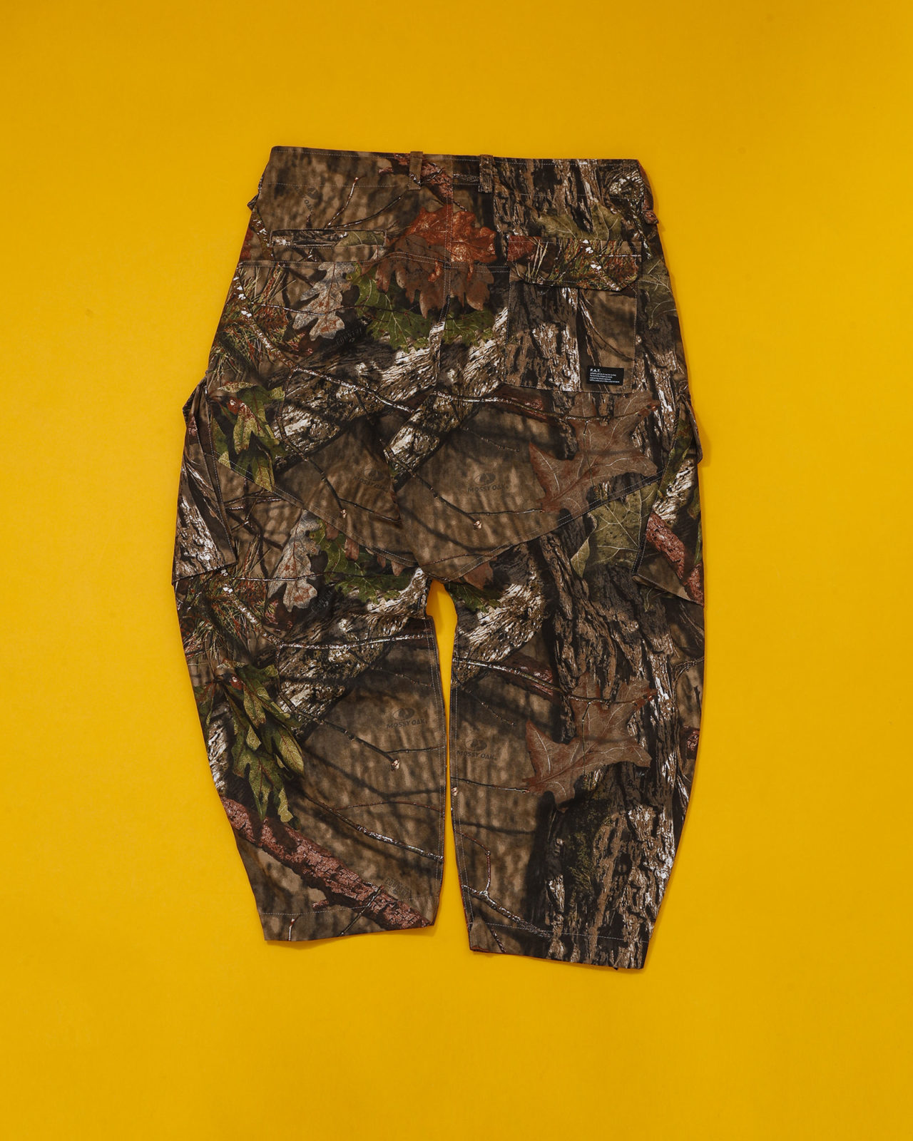ミリタリーのオーバーパンツ並に極太なカーゴパンツはこちらもMOSSYOAK社の迷彩はデッドストック生地を使用したアイテム。無地同様にキレイにボリュームが出るようにフロントにタックが入っている!NO WARこの令和、平和主義。だから夜戦柄と言ったカモフラージュではなくハンティング、そんなサムシング。こちらも一度お試しを、ぜひ!