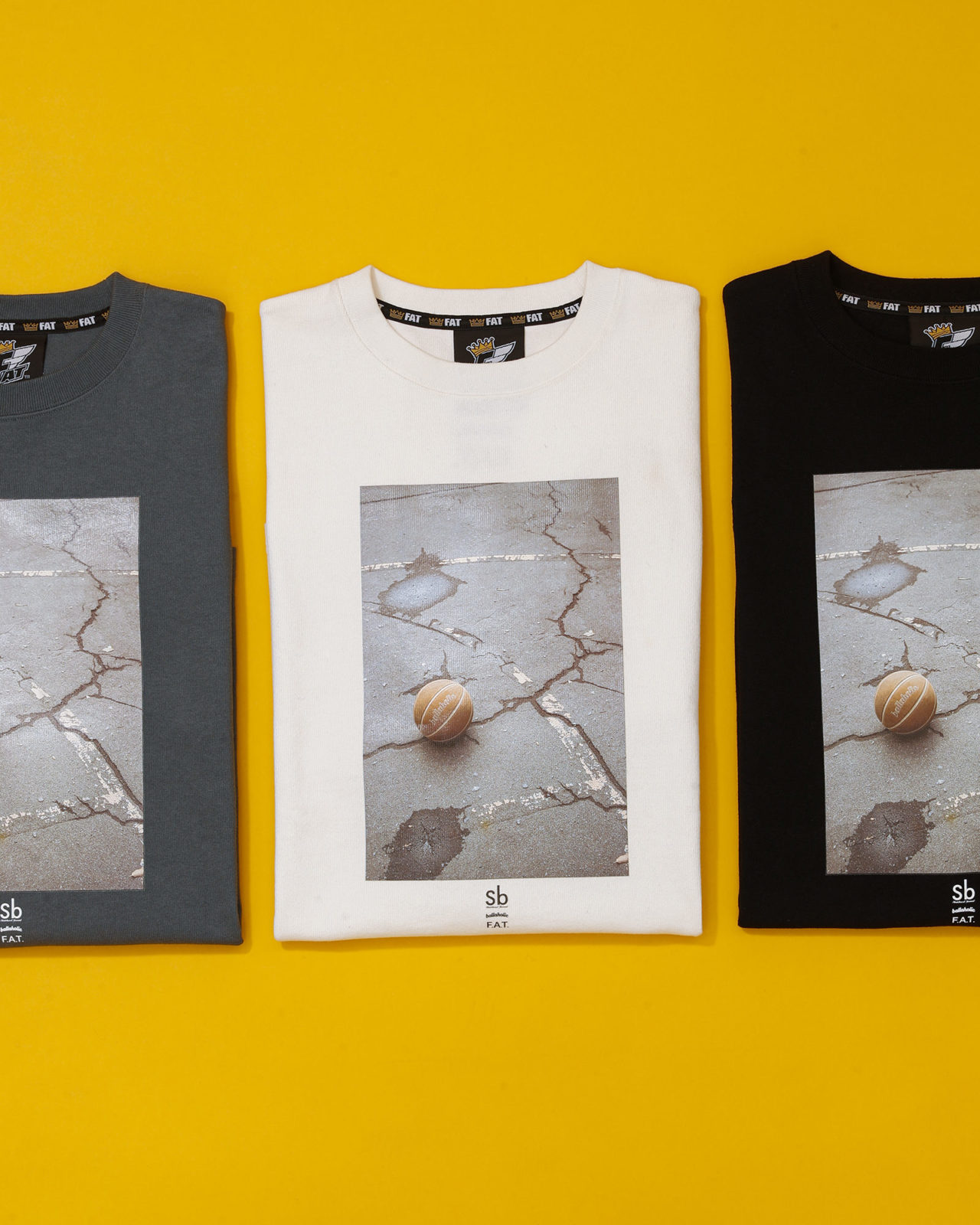 ストリートスケート大好きのF.A.T.のジャブとフックがあるなら、ストリートボールやバスケットが大好きのF.A.T.のジャブステップがある。日本から世界へ。他の追随を許さないストリートボールとそのカルチャーと戦闘服(いつでもどこでもプレイできるスタイル)をリードするブランドでありオピニオンである“ballaholic”とのカプセル・コレクション。いつでもどこでもプレイ・インのセットアップと13oz Tシャツ。なおかつ、いつでもどこでも素敵な人とミートアップしてもいいデザインと素材感のセットアップと13oz Tシャツでもあるのがミスター・トリプルダブル!