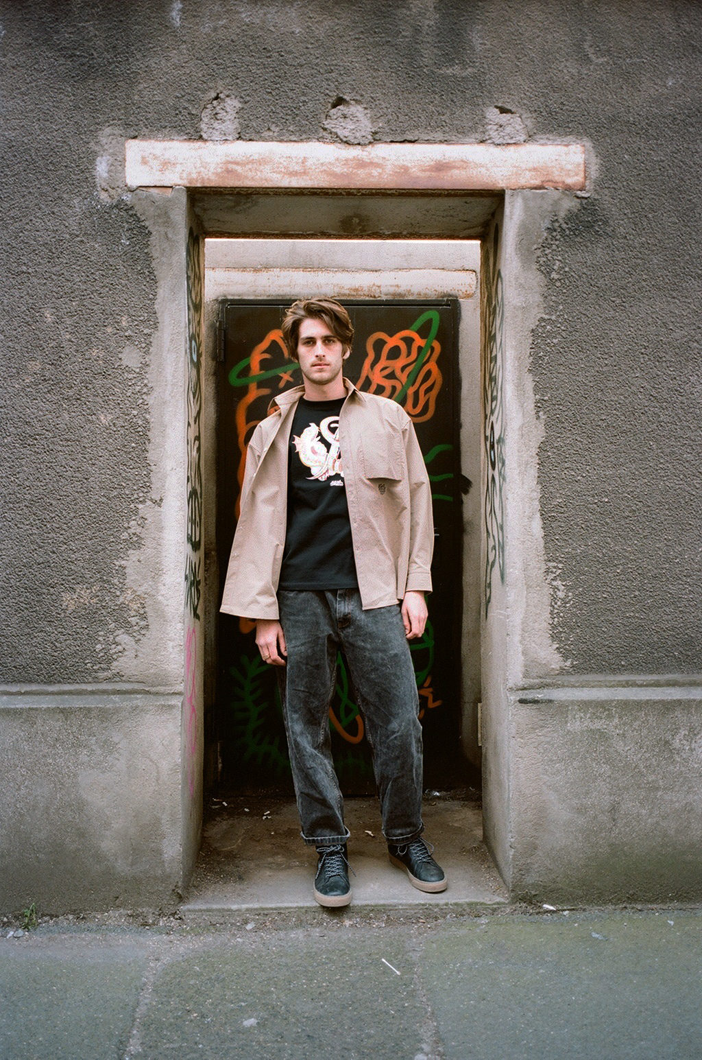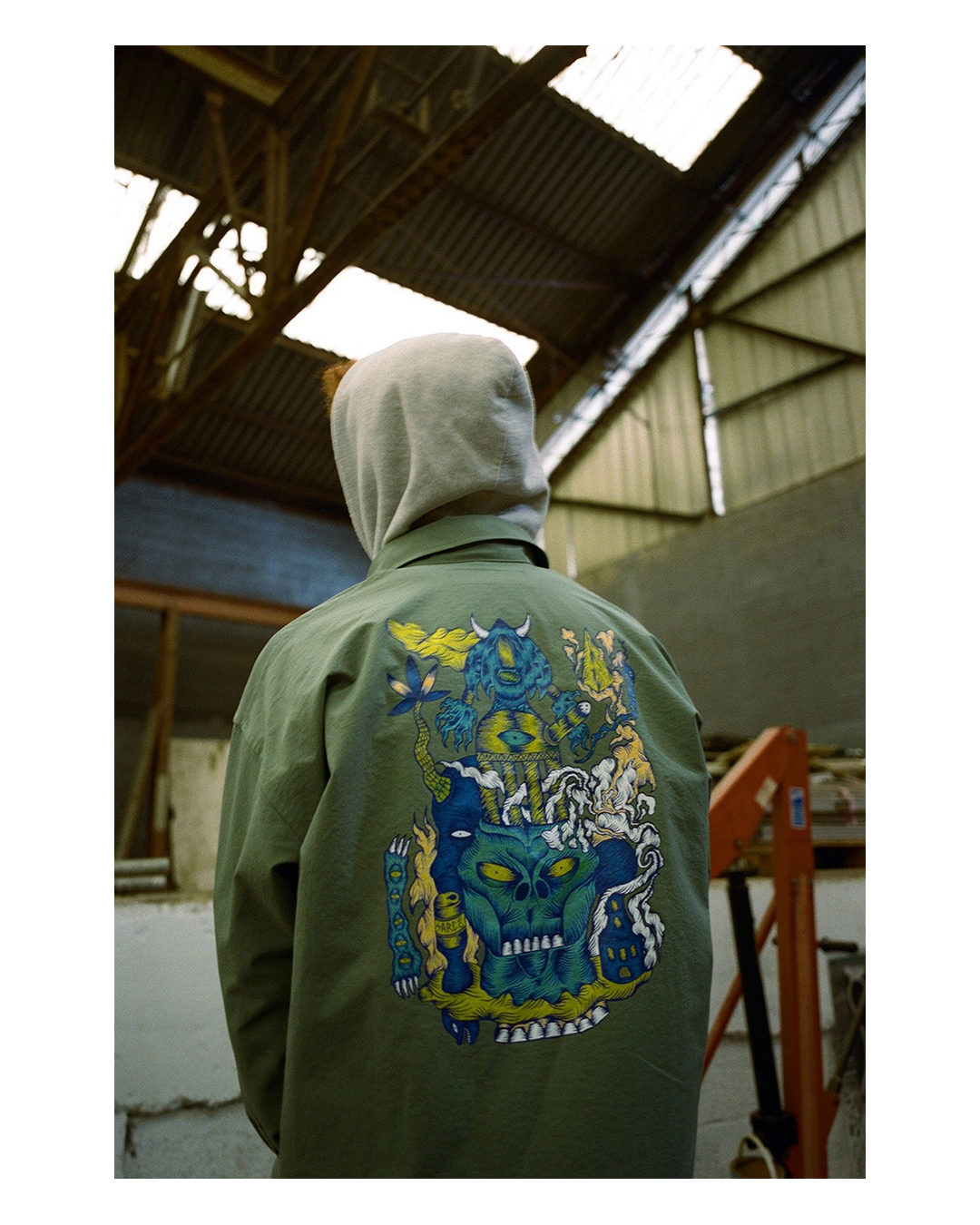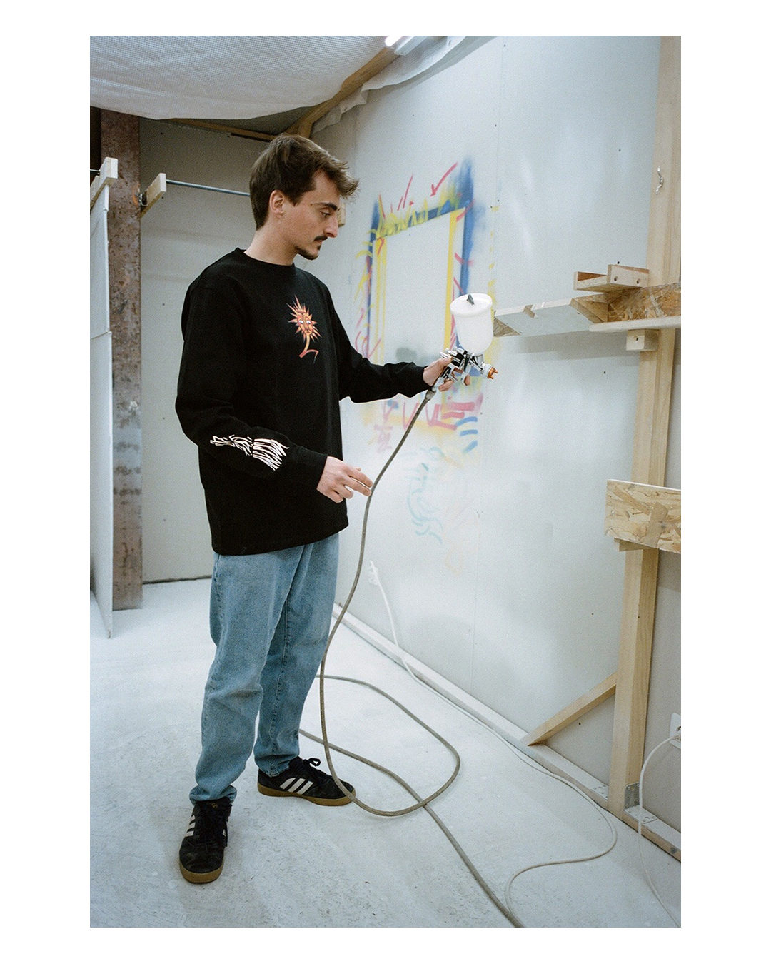 FATの“AIR MAIL”シリーズ。ざくっとおさらいしておくと、コラボレーションに参加してくれたアーティストのベースでスナップすること。もしくは、FATのアイテムを東京以外の異国の彼の地でスナップすること。ポートランド、ロンドン、サンノゼ、パリなど、FATのホームページを見てもらえばAIR MAIL”シリーズのバックナンバーを楽しんでもらえると思う。そんなAIR MAIL”シリーズで、前回に続いて今回もかなり理想的なスナップが実現した。なぜなら。コラボレーションのアートワークを手がけてくれたパリの新進気鋭のアートクルー”Mecca”のアーティストたち本人が、そのアイテムを着て、おらが町のパリ界隈でスナップして、AIR MAILを届けてくれたからだ。撮ったのは我らがO.G.ベンジャミン。今回も素晴らしい寸分違わない彼の狙い通りに構図でバッチリ。アートワークを手がけた本人が着て佇むスナップ。自分で描いものを自分で着るのは恥ずかしいというタイプより、自分が自信をもって描いたものをアイテムとして堂々と着る。個人的にはそっちのメンタリティの方が断然に好き。フェリックス、セザール、ポールの3人のアーティストそれぞれの個性がアイテムにも佇まいにもしっかり出ている。こんな素敵なやりとり、AIR MAILが、嬉しい。そして、またストーリーを生んでいく。みなさんにも、それぞれのおらが町で、ぜひ、Meccaとのコラボシリーズもスナップして楽しんでほしい。