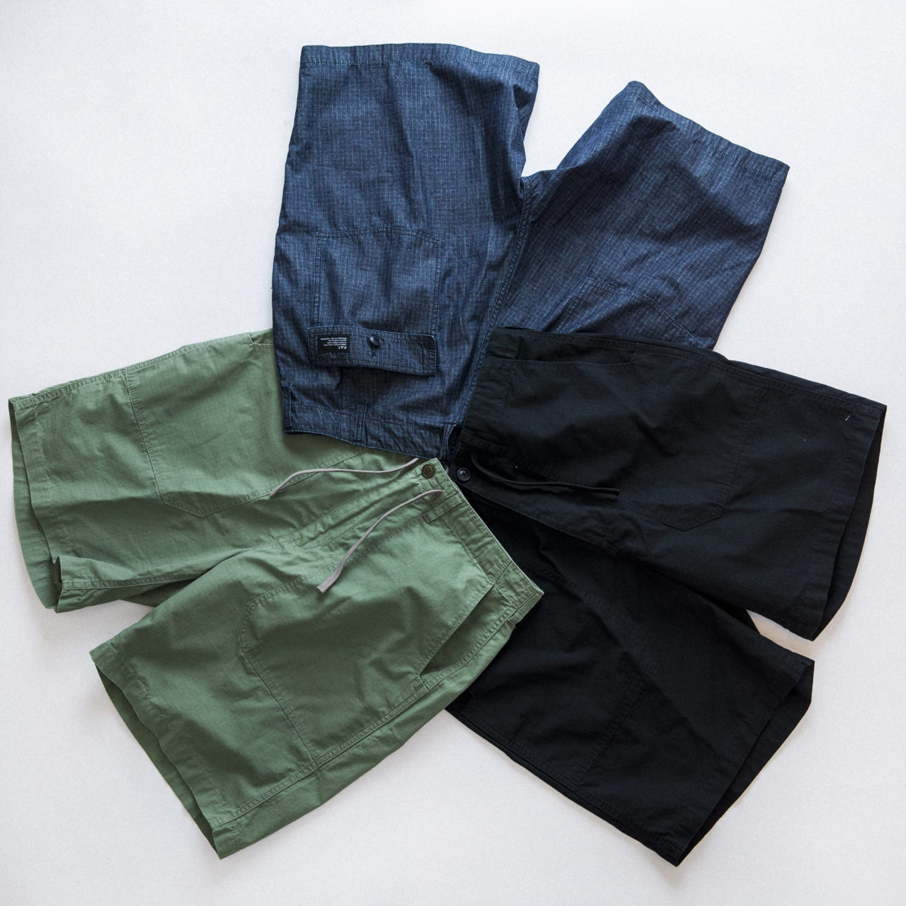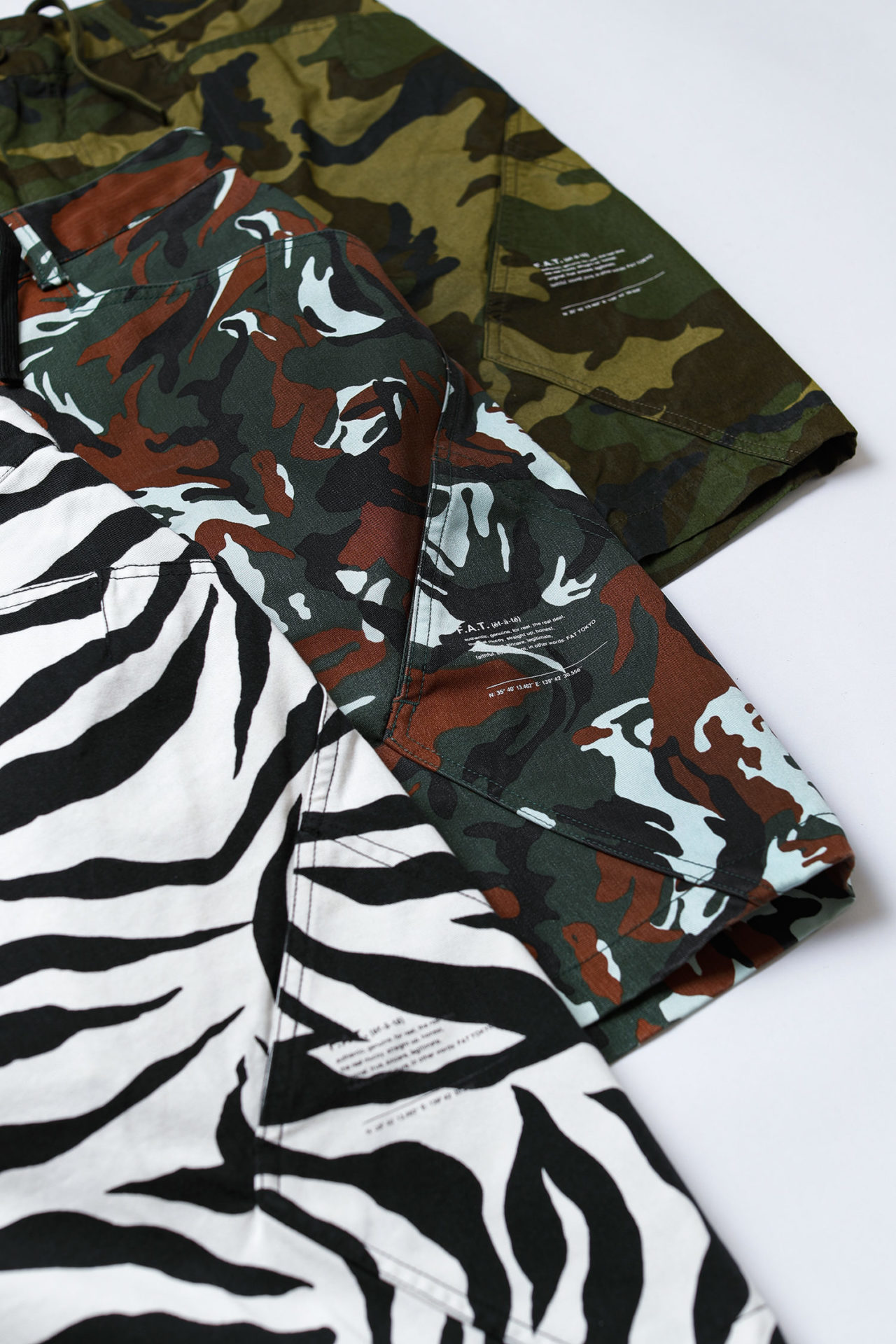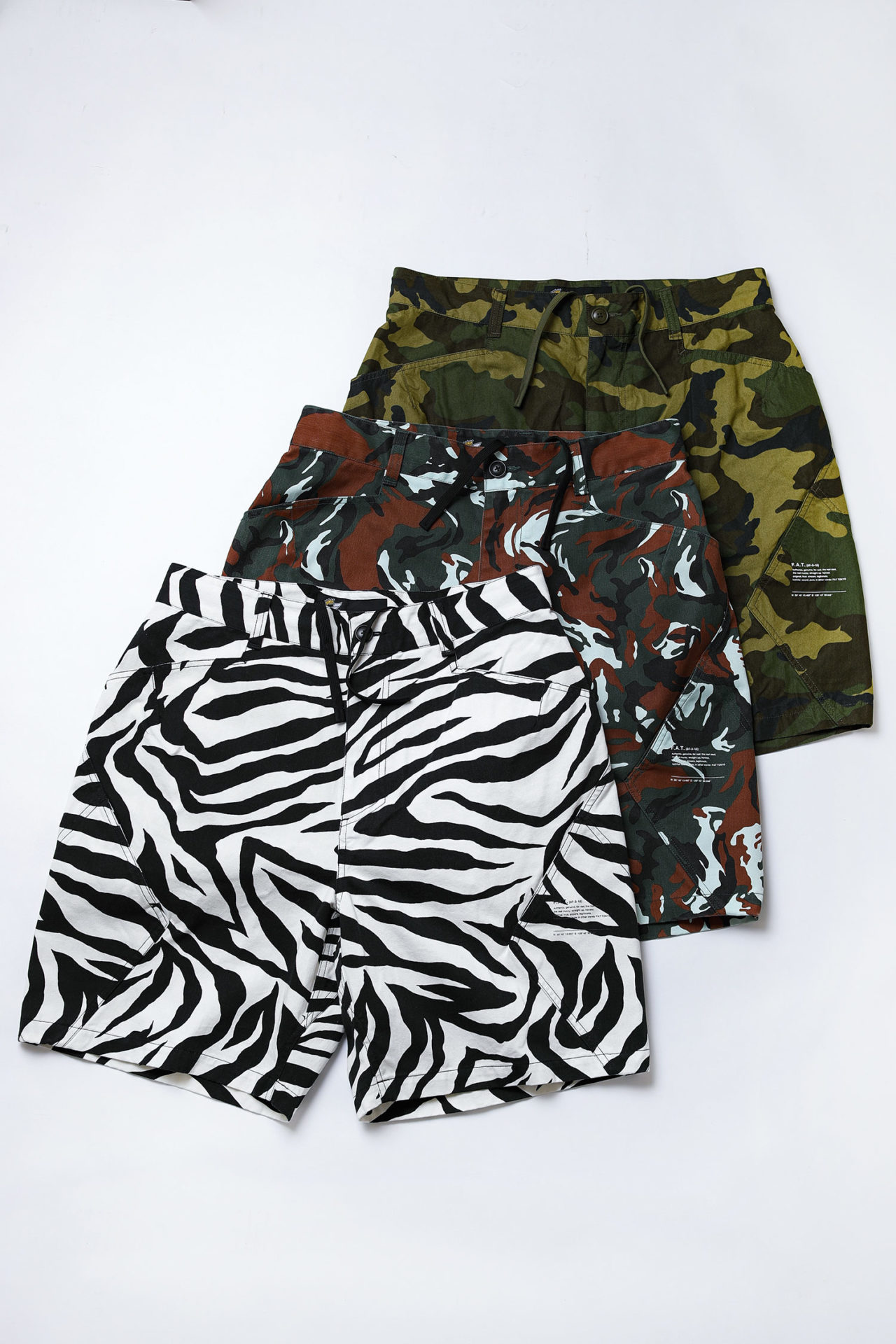 印象強い柄のショーツはアサルトパンツをベースにたっぷりしたシルエット、既に展開しているロングパンツのDRONEとはまた違ったシルエットで展開。ポケットを立体的にかつ利便性も備えたデザインで、もちろんウエストにはドローコードを入れイージーパンツとしても着用可能。ゼブラ柄にモザンビーク、ウッドランドの迷彩と揃えている中で、夏といったら白Teeにカモフラージュ柄のパンツの合わせが良いカモ。ぜひ!