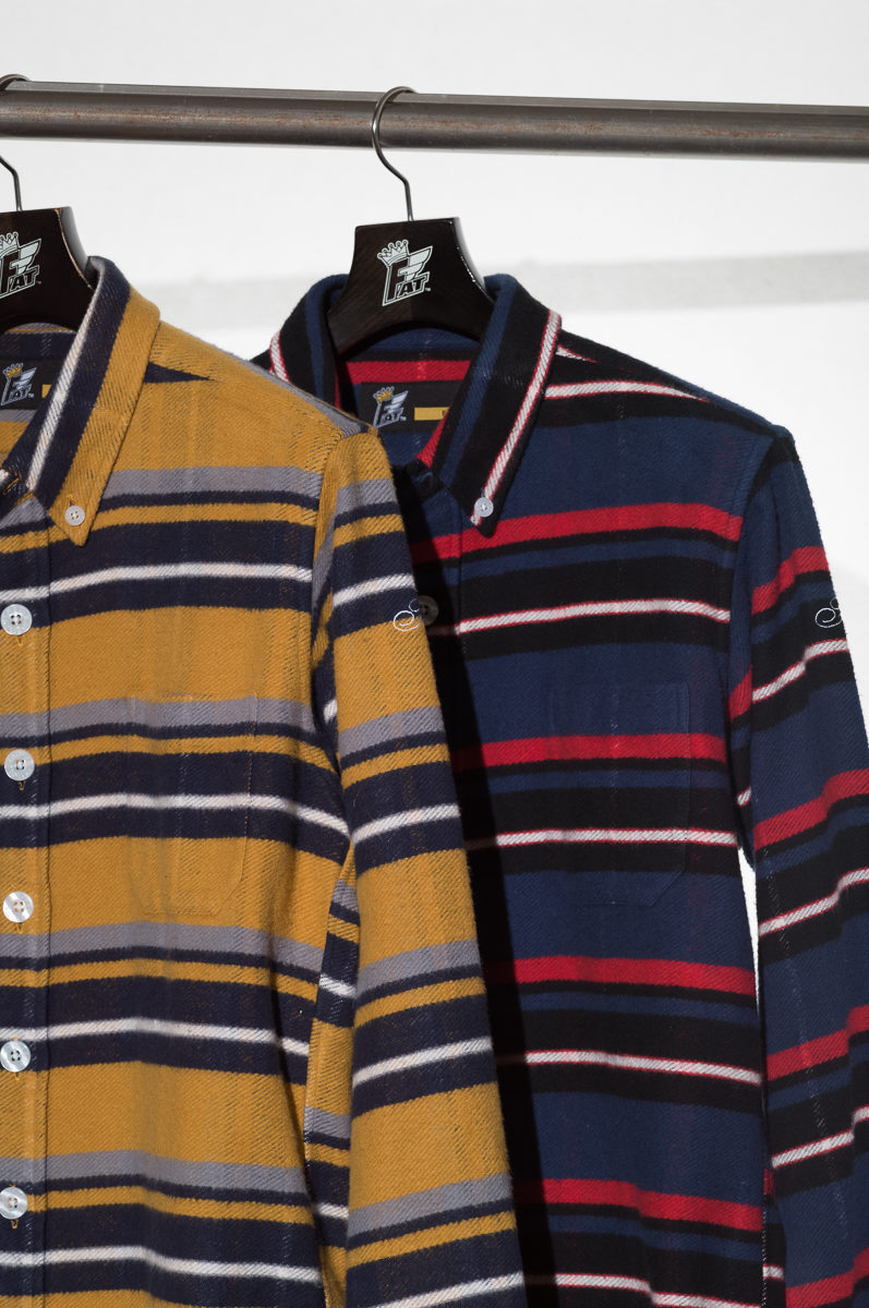 発色の良いコットンフランネル生地を使用したタータンチェックのネルシャツ。こちらもFATのアイコンでもあるデカボタンBDシャツをベースに仕上げ、厚すぎない生地なので早い時期から長いシーズン活躍するアイテム。こちらもぜひ!
