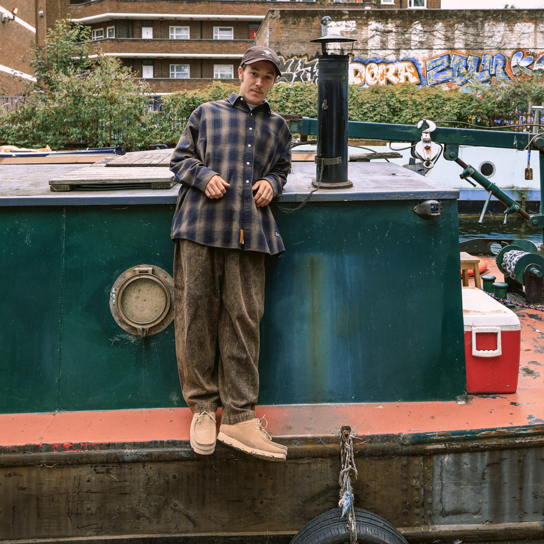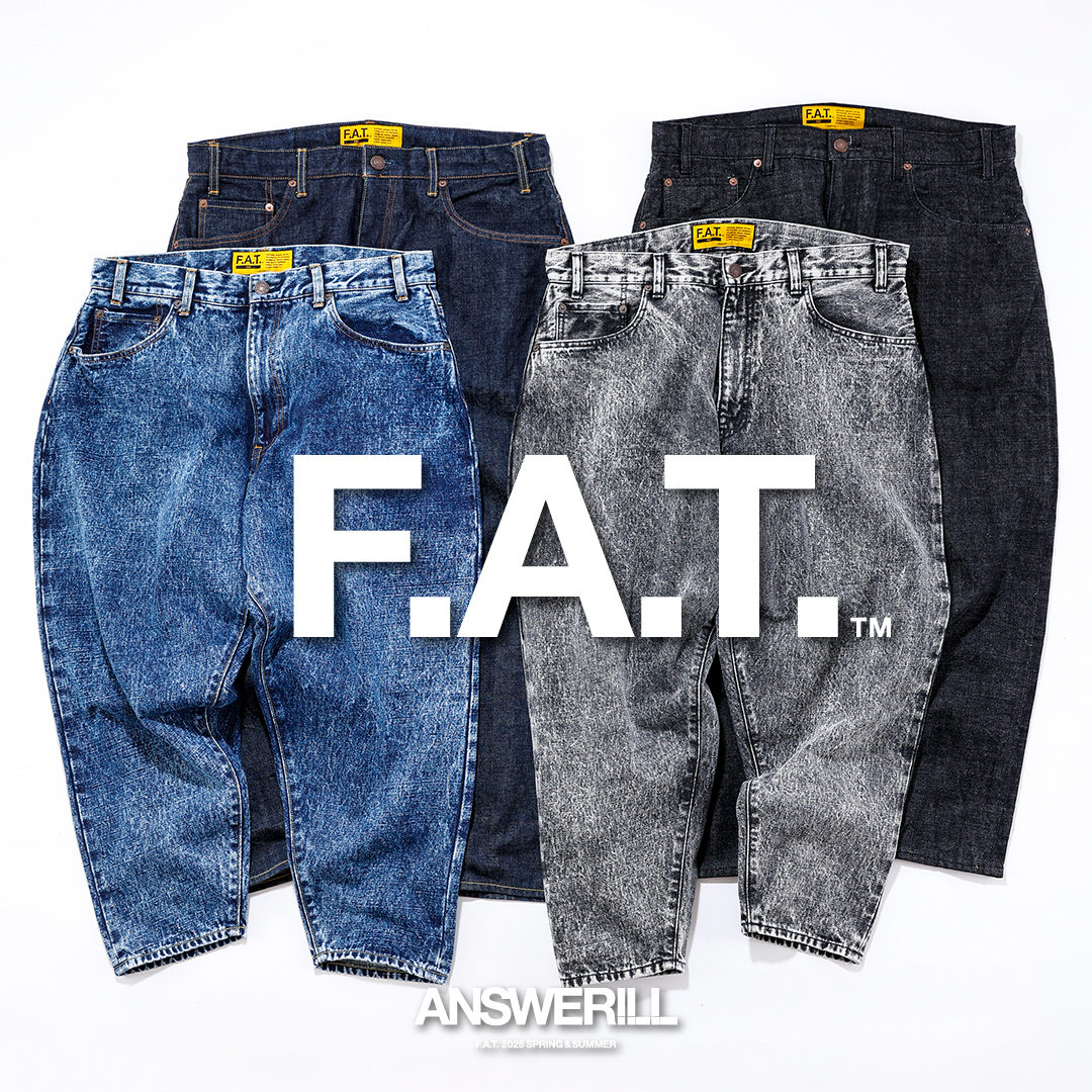 素材、縫製、加工と細部までF.A.T.の拘りを詰め込んだ国産の14ozセルビッチデニムバリエーション。こちらは定番のワイドテーパードタイプ”247″は英語で、1日の24時間と1週間の7日間を足し「Always = 毎日」毎日穿きたいデニムをコンセプトに”247″をデザイン。名前が示す通りF.A.T.を代表するデニムは、オーセンティックな縫製にこだわった1本。これまでのディテールをブラッシュアップし、股上を深く、渡りを広くとることによりヒップから膝にかけてボリュームを持たせたワイドテーパードシルエットに加え、9分丈レングスはどんなスニーカーやシューズとも絶妙なバランスで合わせられる。ウエストはドローコードを備え、ベルトレスでイージーパンツとして着用可能。カルチャーをもミックスした拘りの詰まった1本。今季はムラ感ある色落ちのアシッドウォッシュでも展開。これまでの色落ちとは異なる新鮮に映るアイテムです。お試しください。ぜひ!!!